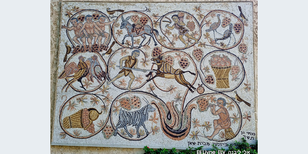 הפסיפס נעשה לפי פסיפס ביזנטי שנתגלה בחרבת אל־חמאם, ליד בית שאן.