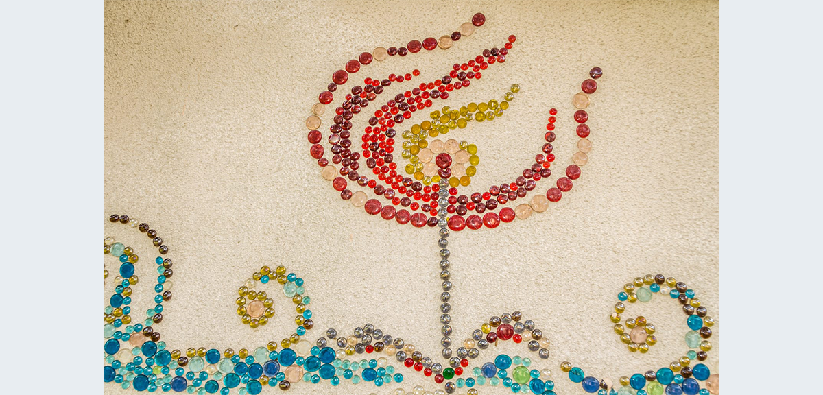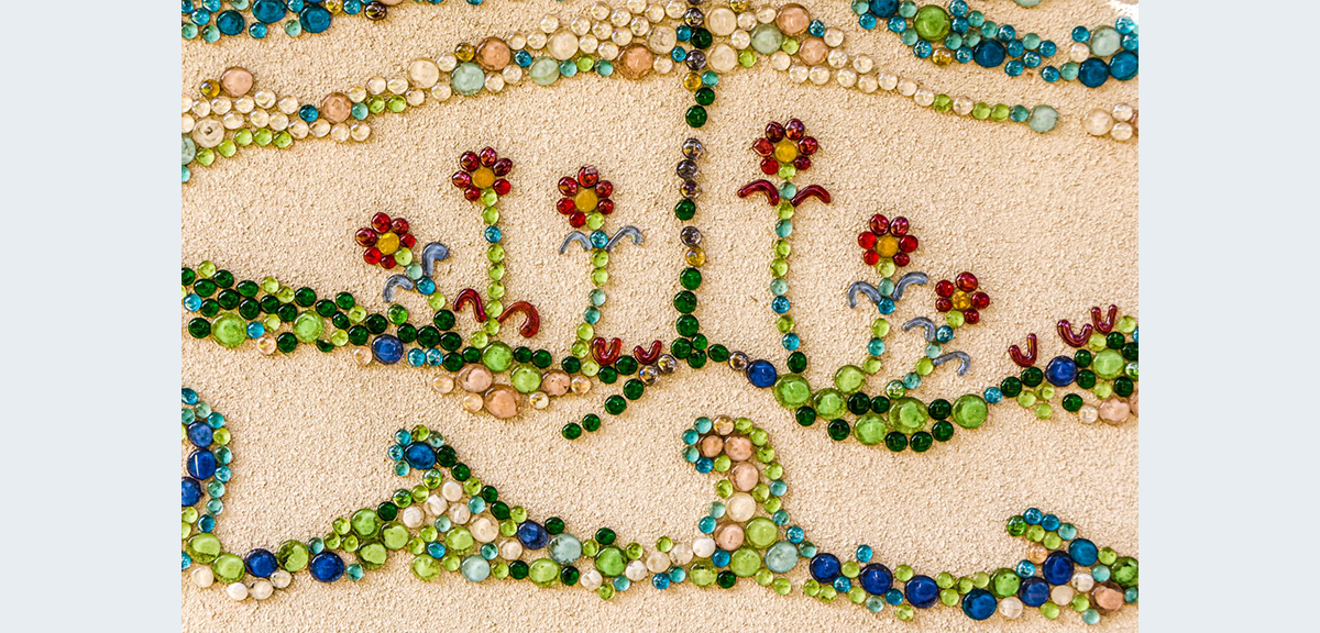 נעמי ידלין (1935–2011) נולדה וגדלה בקיבוץ עין המפרץ. למדה הוראת מלאכות יד ואמנות במכללת אורנים, ובמהלך חייה יצרה במגוון טכניקות וחומרים: ויטראז'ים, תבליטים באבנים צבעוניות, עור, עץ, אמאיל ועוד.