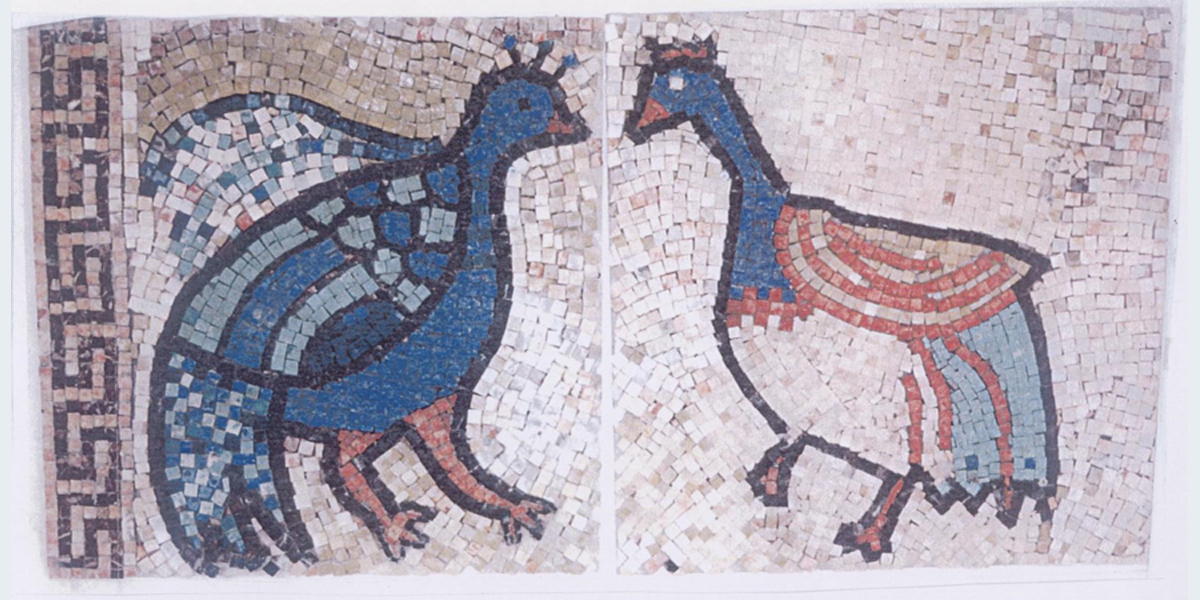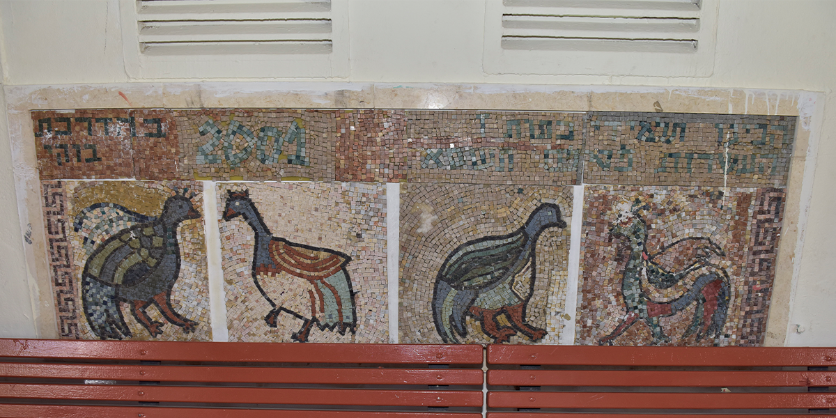 חלק מפסיפס שהכינו כיתות ז בבית הספר "חוגים" בחיפה באוגוסט 2001 בהנחיית ד"ר שרה מלצר.