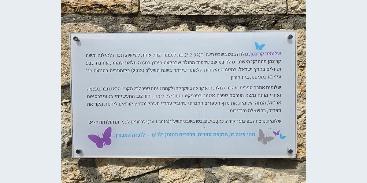 הפינה לזכר שלומית קריגמן, בית חורון //