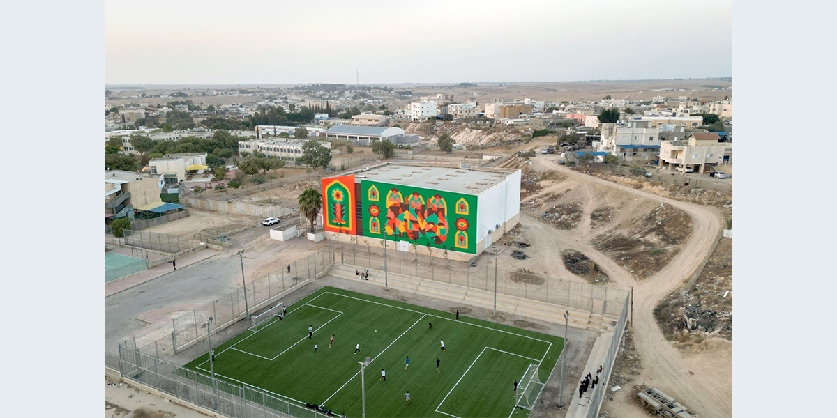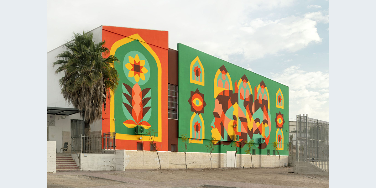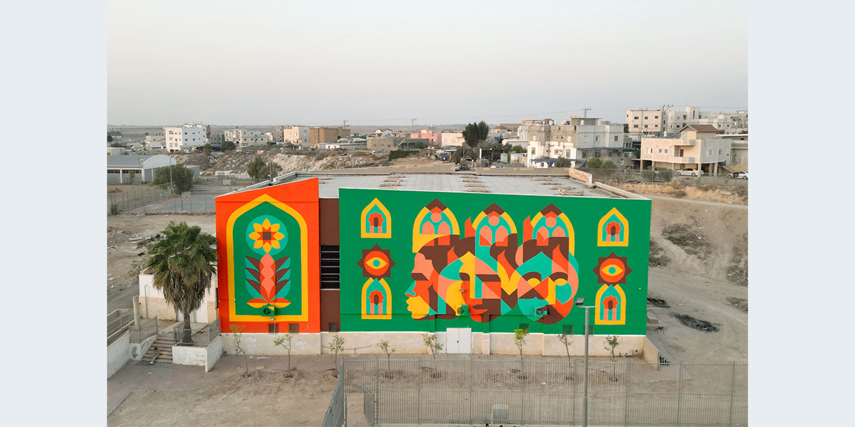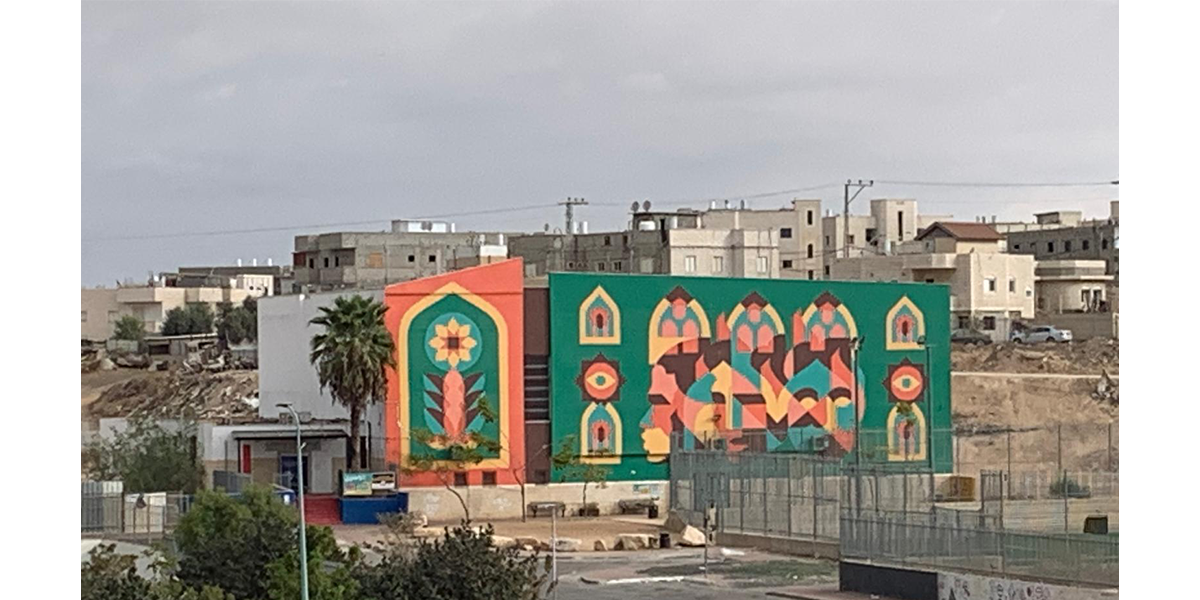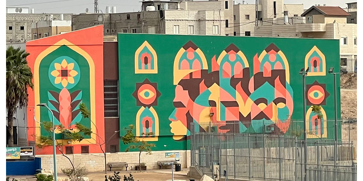 במרכז ציור הקיר עומדות שלוש דמויות ומעליהן שלוש צורות ארכיטקטוניות דמויות קשתות ערביות. האמן בחר לצייר בצבעים חזקים הבולטים על רקע העיר המדברית, ולשלב בעבודתו יסודות עיטוריים ואורנומנטיקה איסלמית, וכך לתת במה לאופייה הייחודי של העיר רהט, העיר הבדואית היחידה בעולם. המוטיבים ששזורים בציור הקיר מאזכרים קליגרפיה ערבית. הקשתות המחברות בין הדמויות שוזרות ביניהן קו, כדימוי לקשר בין אנשים, חזק, עמיד ויציב כמו קשת האבן, העומדת איתנה ומחזיקה משקל הבניין כולו.