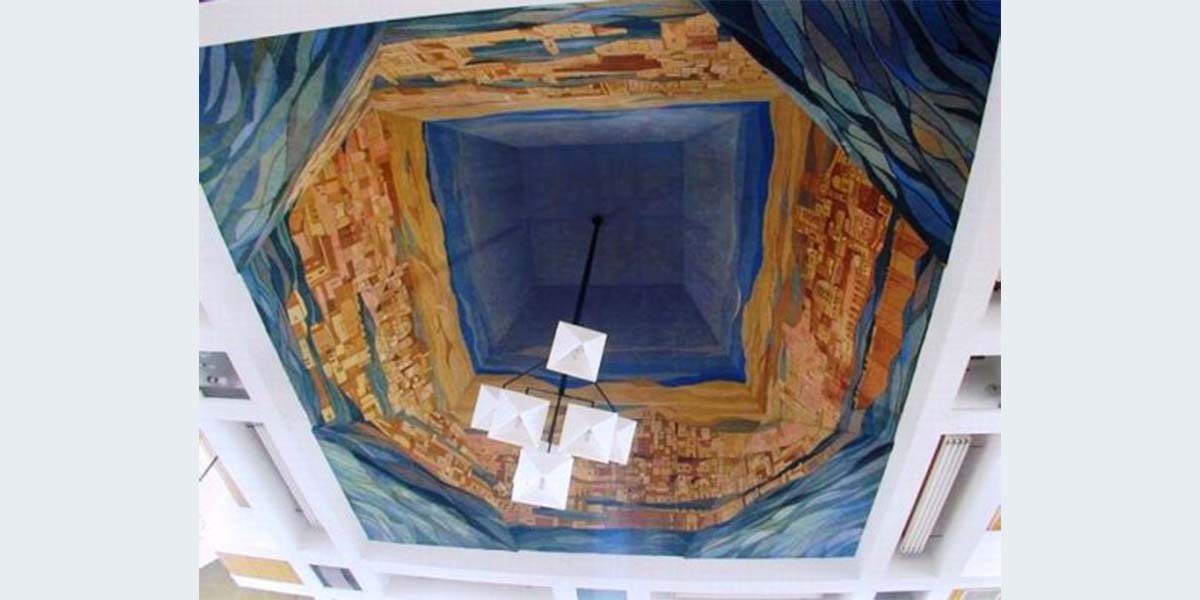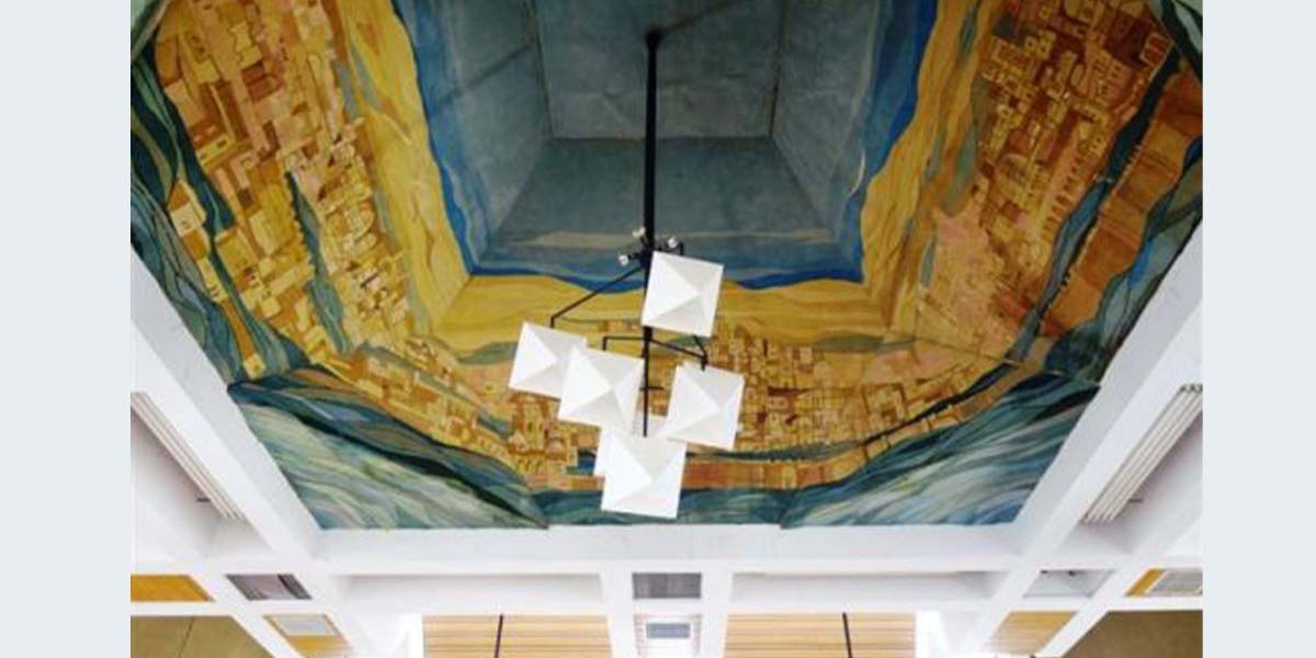 לדברי מיכאל יעקובסון, הכיפה בבניין החדש שאבה את השראתה מן הבניין הראשון של הישיבה, שתכנן האדריכל מאיר בן־אורי, והציור שציירה אסתר פרקל הוא בסגנון סיני.