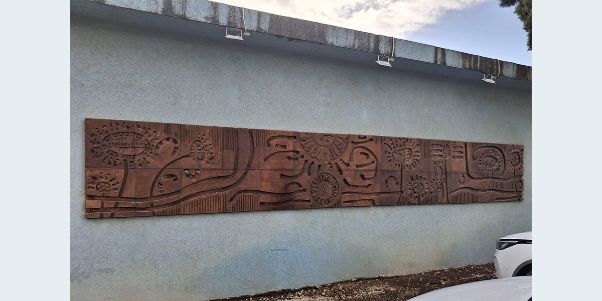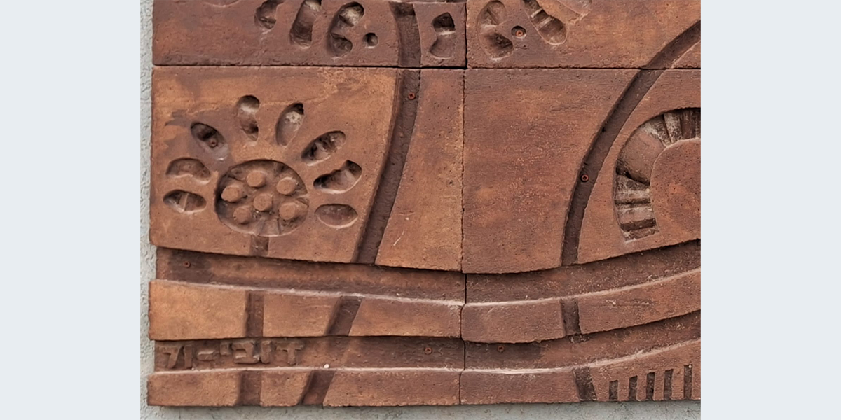 תבליט בטון אפור שהיה על "שרוול" מקלט, ולימים הועבר לקיר בית הקירור ונצבע בצבע כתום, כדי שיבלוט יותר. דובי אריה שהגיע בחברת נוער לשער הגולן היה מאומץ אצל משפחתו של האמן חיים ברגל, וכך טופח כישרונו. לימים עזב את הקיבוץ ואת הארץ וחי בקנדה כ־30 שנה ובשנות האלפיים שב ארצה והתיישב בעפולה.