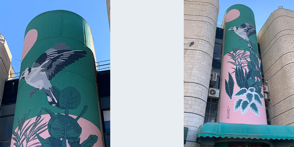 צמד האמנים ALWAYS ו־NEVER יצרו את העבודה הזאת. צמד האמנים הגרים ויוצרים בתל אביב־יפו, עובדים ביחד על ציורי קיר במרחב הציבורי. השילוב ביניהם מייצר מפגש בין עולם הטבע (נועה מציירת דימויים מעולם הטבע הישראלי והתל אביבי), לבין העולם האורבני (אנדרי עוסק בציוריו בתנועה העירונית התוססת והמשתנה).
