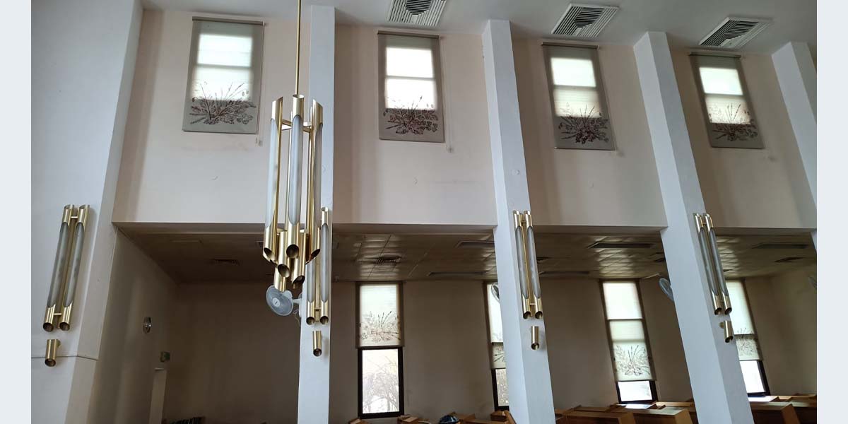 עיטורי החלונות נעשו בהדפסת עלים שנאספו בשטח.