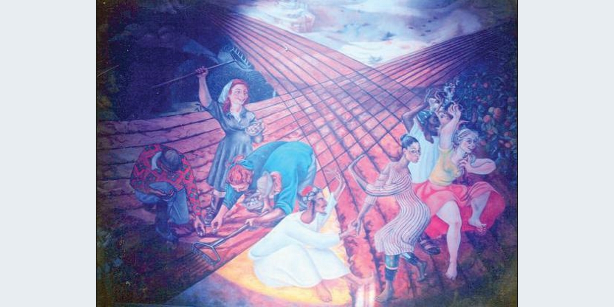 הציור היה על קיר במבואת קולנוע רחל, שנבנה בשנות ה־50 במרכז אפרידר באשקלון. בציור תוארו חקלאים עובדים בשדה ולידם להקת רקדניות ורקדנים. הדמויות מייצגות עולים מגלויות שונות: אירופה, תימן וצפון־אפריקה. הקולנוע וציור הקיר נהרסו בשנות ה־90 ונבנה במקום מרכז מסחרי.