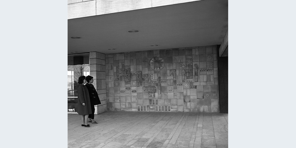 יצירה זו נולדה בעקבות מפגש עם האדריכל זאב רבינא, שהיה אז יועץ לפיתוח הקמפוס בגבעת רם. ב־1965 הוא הזמין את עוגן ליצור תבליט לקיר הבניין הסמוך לפקולטה למדעי החברה ולחוג לסוציולוגיה. דמויות העולים מארצות המזרח התיכון עומדות מאחורי העבודה קיבוץ גלויות. אליהן התווספו דמויות החמור ככלי תחבורה, והיונים כמנחת עניים. מקור השראה נוסף היה עבודתה עם בני נוער בחוות הנוער הציוני בירושלים בשנים 1955–1962, שעימם יצרה פסלים של חיות ודמויות אדם.