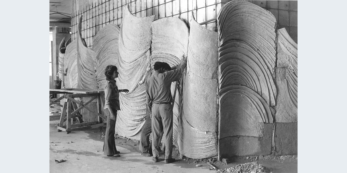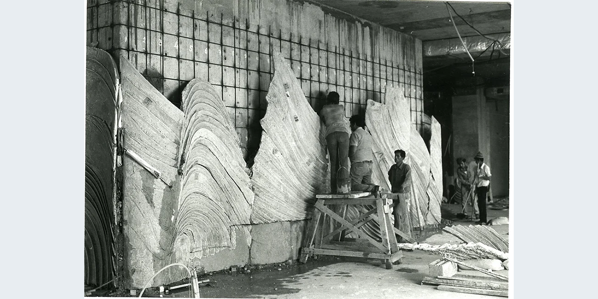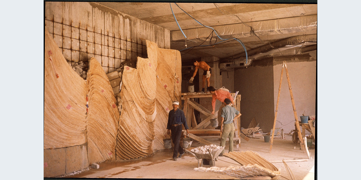 האדריכל יעקב רכטר ביקש לעטוף את פיר המעלית בסניף בנק לאומי, בקומת הקרקע במגדל העיר בירושלים בקיר קרמיקה.