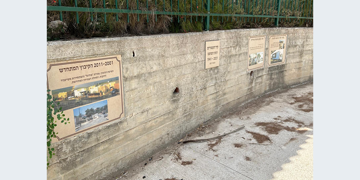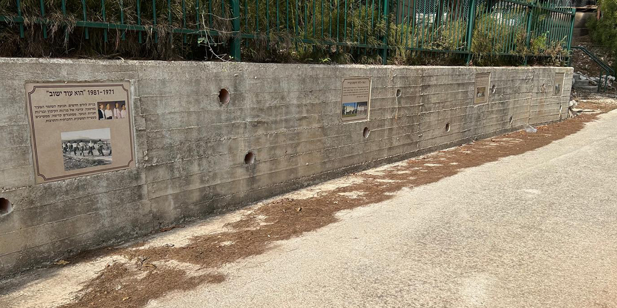 "[…] עם התקרב מועד חג השמונים לרמת השופט, חשבתי שנכון לקיים פרויקטים שכונתיים לכבוד החג, כאשר כל שכונה תכין אתר או פרוייקט אמנותי משלה. מתחת למבנה החשמלייה לשעבר הוקם לפני כמה שנים קיר תומך. ביוזמת חיים חכים ויחזקאל דנגור השאירו הבנאים בקיר תשעה ריבועים שקועים לפרוייקט אמנותי עתידי. תשעת הריבועים ממש "ביקשו" להכין קיר מלמד, ולהקדיש ריבוע לכל עשור בתולדות רמת השופט, כמו כן ריבוע אחד לעתיד. […] חשבנו להכין ריבוע עם טקסט ותמונה, שייצגו את ההיסטוריה של הקיבוץ בקצרה. […] אסתר תורן [כתבה] את הטקסט ו[בחרה] את התמונות לכל עשור, ובעבודה משותפת עם שלמה מנדל, חיים חכים, ציפי וגלעד חכים, התגבש הרעיון הסופי. תוך כדי העבודה התברר לנו שניתן לצבוע תמונות שבמקור צולמו בשחור לבן, ואכן הקיר הפך לצבעוני יותר. את התוכנית הגשנו לוועדת תרבות ולוועדת תכנון, שאישרו את התוכנית ובירכו על היוזמה. […] שמרית זיו לקחה על עצמה את תכנון הגינון של המקום. דותן עם צוות הנוי התגייסו לביצוע הגינון […] מטרתו של הקיר להיות קיר מלמד. ההיסטוריה של קיבוצנו מוצגת בו בקיצור רב, במלל ובתמונות. הוא מיועד לילדי הגנים, לילדי בית הספר, ולכל אלה שאינם מכירים את סיפורו של הקיבוץ. […]", אסתר כרמל חכים