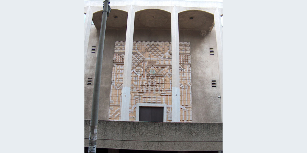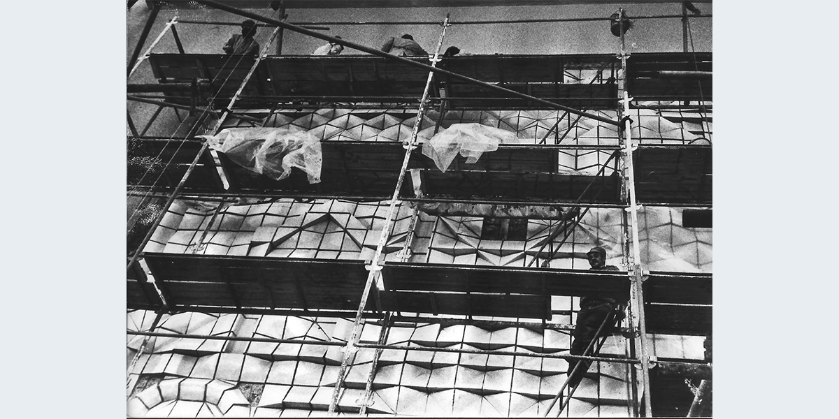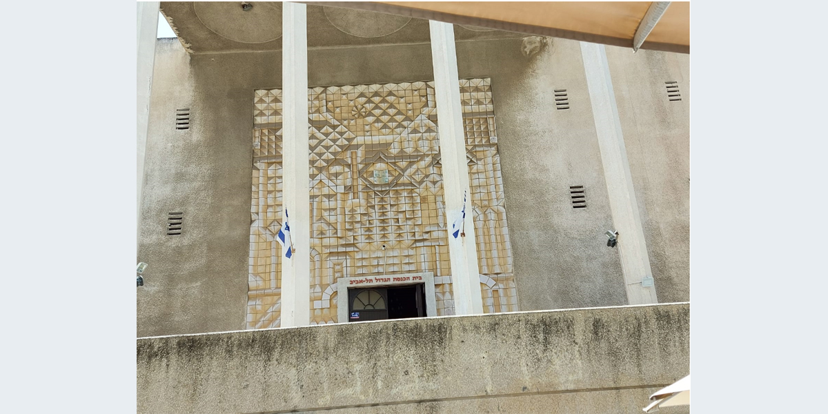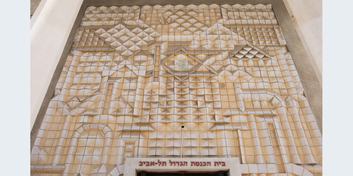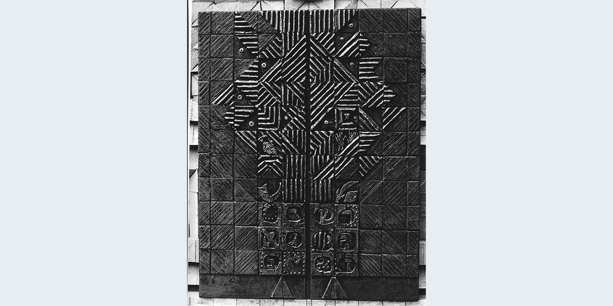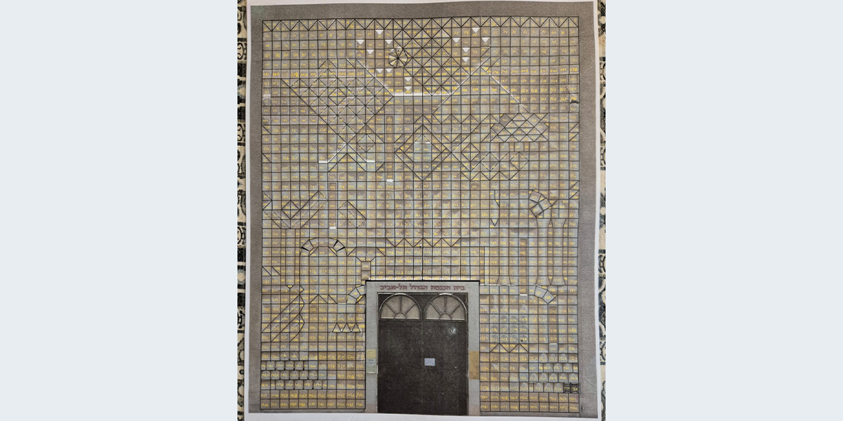 היצירה עשויה 480 קוביות קרמיות תלת־ממדיות, בצבעי אדמה בהירים מאוד ורכים, שנהביים או מוזהבים, היוצרים מעברים הדרגתיים כמעט עד הצבע הלבן. כיום בגלל זוויות הקוביות וההצללה ואולי גם בשל לכלוך שהצטבר עליהן הן נראות לעיתים כהות יותר, אפרפרות. הקוביות שזוויותיהן משתנות יוצרות מרובעים, משולשים, מעוינים, צינורות וגבשושיות, והקומפוזיציות מרובות־החלקים מתאחדות אף הן ליסודות גדולים יותר. ביצירה אפשר להבחין בדימויים שונים: שערים, עמודים המהדהדים את עמודי בית המקדש "בועז" ו"יכין", לוחות הברית, חושן הכהן הגדול ובו אבני החן, מעין עיטור מעגלי מיוחד. גם מגן דוד בולט בסבך הקוביות שמעל השער המרכזי. את היצירה תכנן האמן שרגא ווייל ואת ההרכבה ביצעו האמן משה סעידי וצוות הסטודיו שלו.