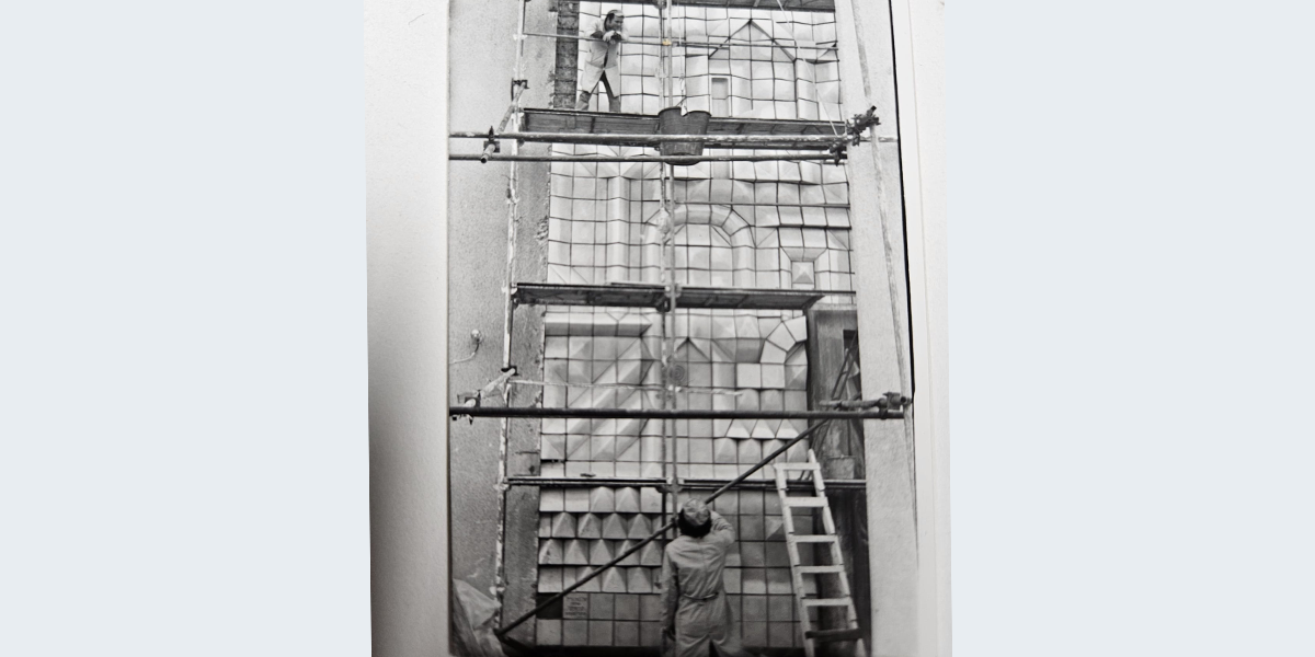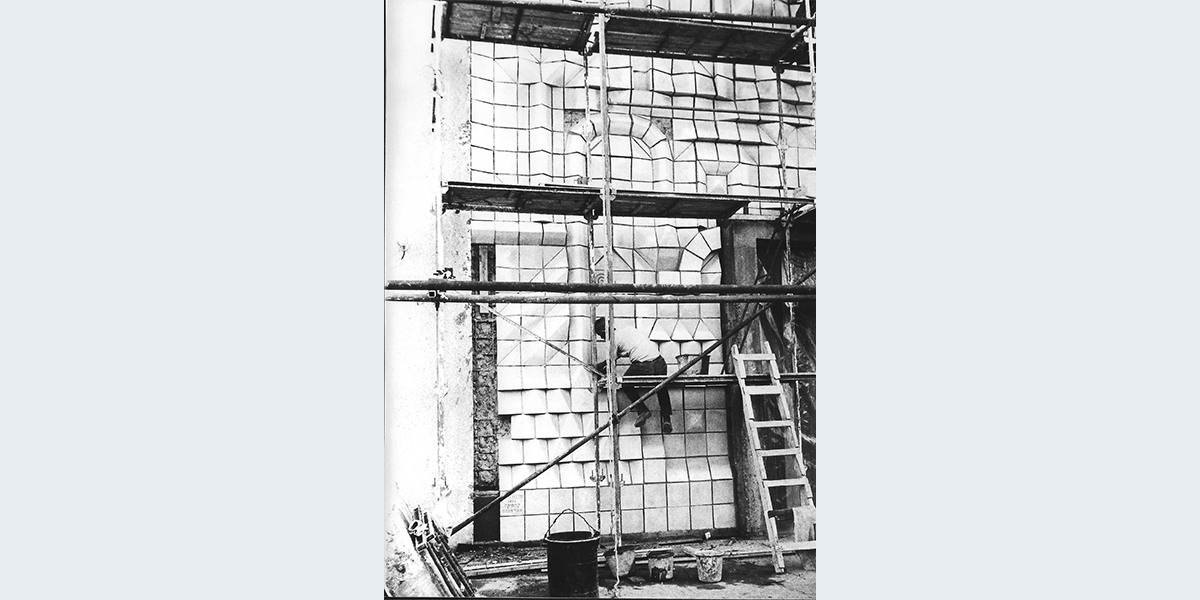 עם שובו ארצה החל ליצור קירות קרמיקה במבני ציבור ברחבי הארץ – בסך הכול עיצב כ־140 קירות. אחדים יצר בשיתוף אמנים אחרים, ובהם שרגא ווייל, שמוליק כץ, משה שק, משה קסטל, נורה ונעמי וציונה שמשי. שילוב אמנותו באדריכלות הביאוהו לשתף פעולה עם אדריכלים רבים, ובהם אדריכלי המחלקה הטכנית של תנועת הקיבוץ הארצי השומר הצעיר: שמואל מסטצ'קין, מנחם באר וחיליק ערד. בקירותיו נתן ביטוי לערכי העבודה והקשר אל הקרקע וגאולת הארץ, אך שילב גם את ערכי היהדות – אם באמצעות סמלים מסורתיים כמו מנורה, מגן דוד ותשמישי קדושה ואם באמצעות ייצוג טיפולוגי לכתב העברי לדורותיו. ביצירותיו אף שיבץ מדי פעם בפעם פסוקים מן המקורות.