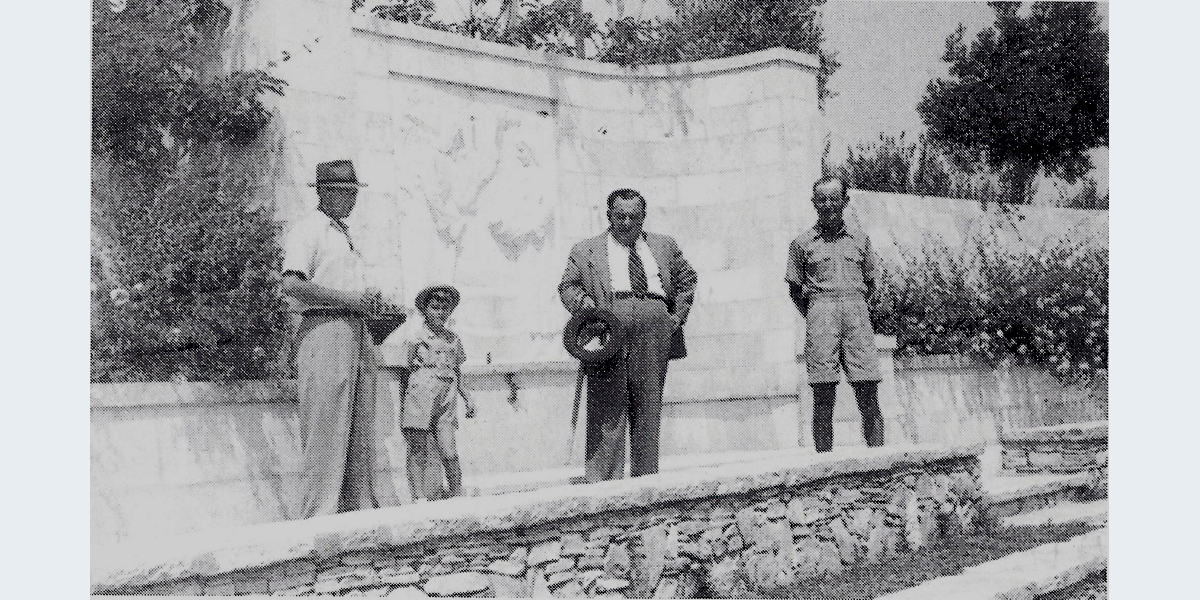 באמפיתיאטרון שהוקם בגן ב־1947 היו 550 מקומות ישיבה, ובמשך שנים הוא שימש מרכז לפעילויות תרבות שונות,: סרטים, מחזות מוסיקליים, קונצרטים, טקסי סיום של בתי ספר. על קיר חזית האמפיתיאטרון קבוע תבליט גדול של תמונה תנ"כית, המתארת את אליעזר המבקש מרבקה "הגמיאיני נא מעט מים מכדך", והיא עומדת והכד בידה ומשקה אותו ואת גמליו. תמונה זו מסמלת את העיר רמת גן היושבת על מעיינות מים וכרי דשא, ומציעה לכל המבקש לחיות בה סיוע. עם בנייתם של אולמות מודרניים ממוזגים רבים נזנח אט־אט האמפיתיאטרון, וכיום הוא עזוב, לפי "רמת גן עירי בת 80 – חידון עירוני לתלמידים" (פריט 4865, עמ' 67).