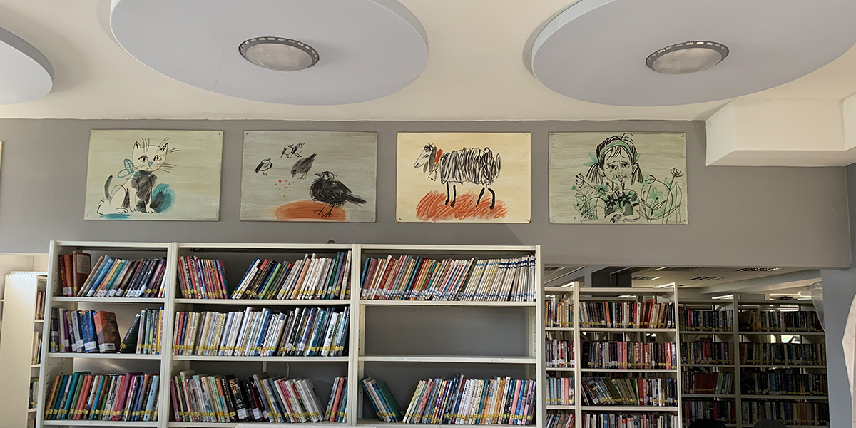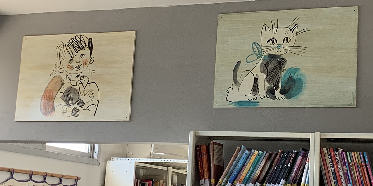 הציורים של שמואל כץ לספר "תכלת ואדום" שכתבה פניה ברגשטיין תלויים מסביב לספריית הילדים ע"ש פניה ברגשטיין. את הציורים הגדילה הציירת מרב סודאי.
