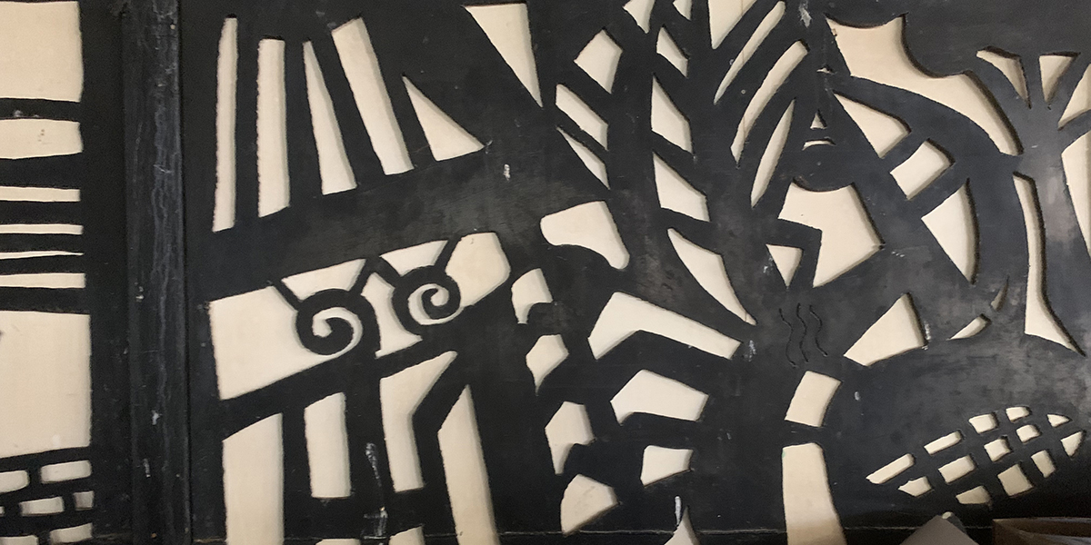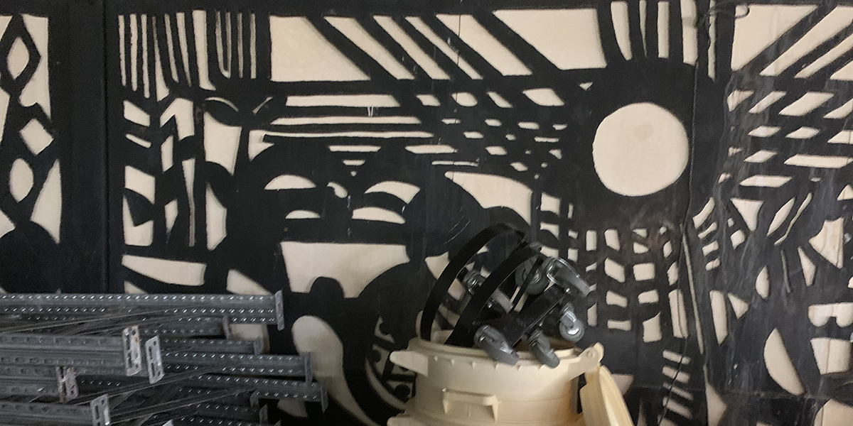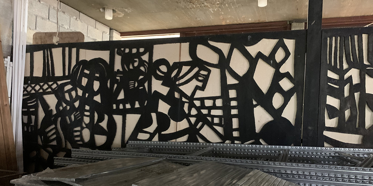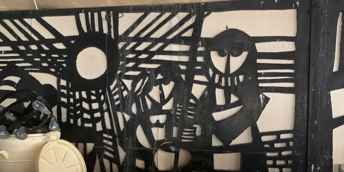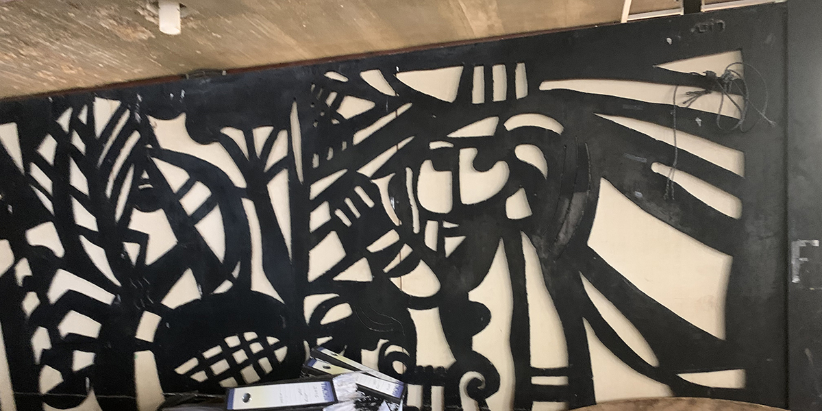 מצב השתמרות היצירה: היא תלויה בחדר המשמש לאחסון עגלות חדר האוכל, ולכן מוסתרת בחלקה הגדול.