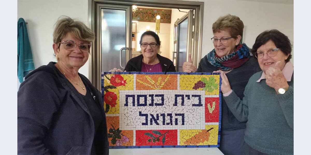 את הפסיפס עשו חברי מושב חבצלת השרון בעת מגפת הקורונה בהנחיית ניצה רטנר, יוזמת "קהילה שוחרת פסיפס".