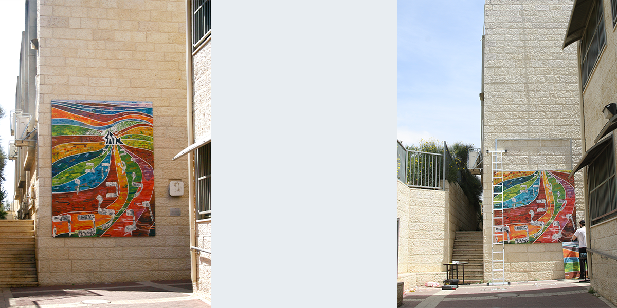 התלמידות ציירו את הפרחים והדביקו את התצלומים על לוח בטון בהנחיית האמנית טל לוי. כל השבילים מובילים אל בית הספר "אוהל רחל".