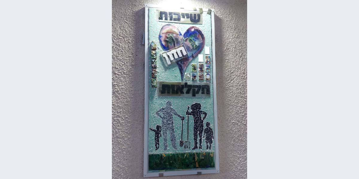 ותיקי המושב יצרו את שלט המועדון בהנחיית האמנית איריס יהל.