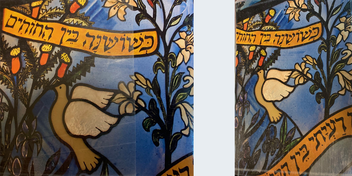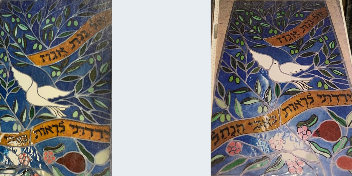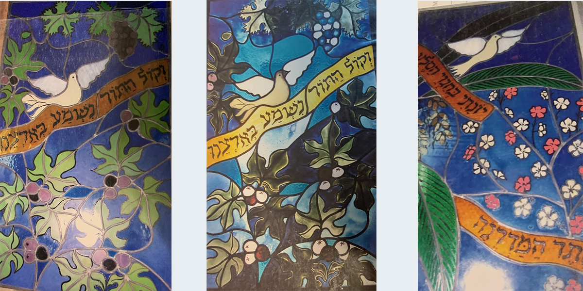 את הציורים לוויטראז'ים ציירה הציירת חנה קרומר, וביצע אותם האמן אברהם שדה שדמי.
