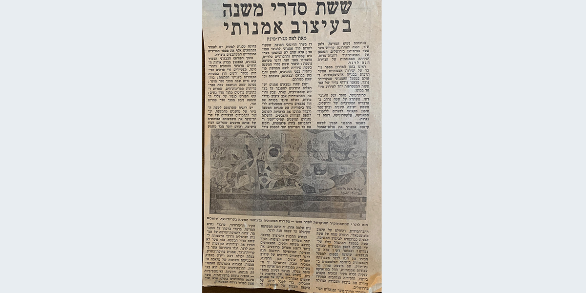האמנית חנה לרנר למדה באופן יסודי את יסודות המשנה לקראת עבודתה על הציור הענקי. הבסיס לה היה הפסוק "[וְהָיָה] אֱמוּנַת עִתֶּיךָ חֹסֶן יְשׁוּעֹת חָכְמַת וָדָעַת" (ישעיהו לג, ו) – כל אחת מהמילים סימלה את אחד הסדרים. היא הקפידה להשתמש בעבודתה בחומרים שמקורם בארץ.