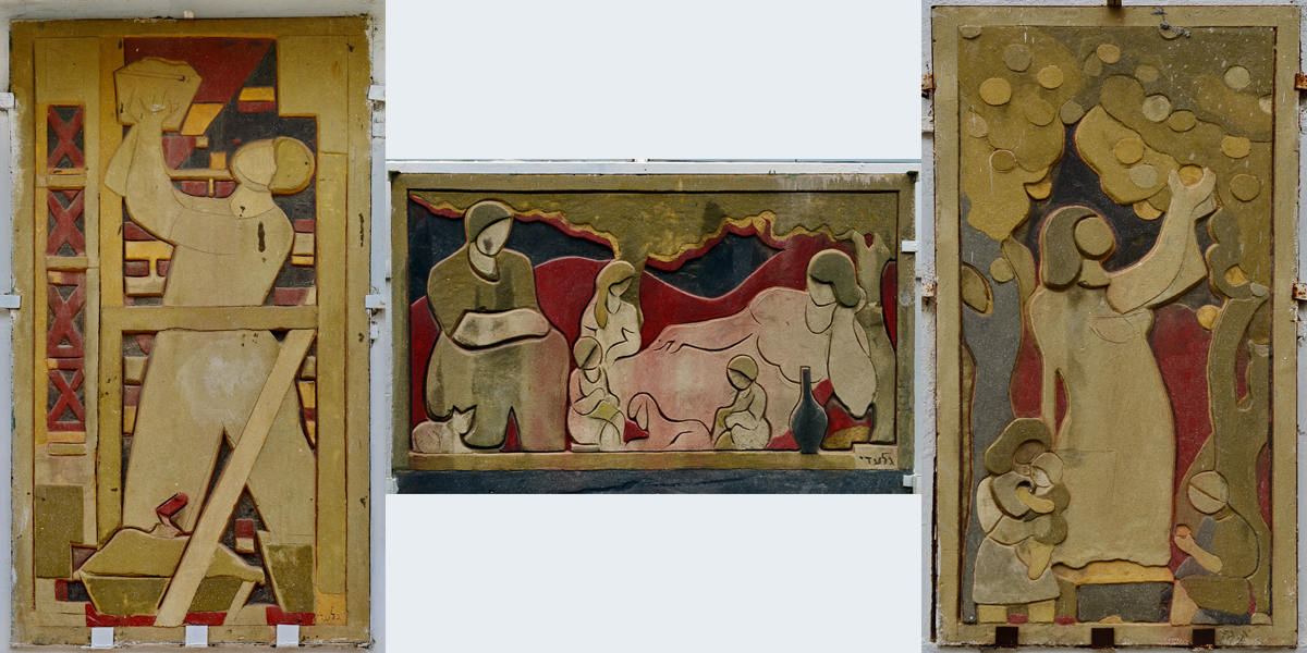 התבליטים עוסקים בשלוש סיטואציות מחיי העמלים: חקלאות, בניין ומנוחה. לדמויות בתבליט אין תווי פנים – מאפיין שכיח ביצירותיו של גלעדי, בין בהשפעת אסכולת "אופקים חדשים" שהוא נמנה עם חבריה במהלך שנות ה־60, ובין כתיאור של טיפוסים ולא של דמויות ספציפיות. נושא התבליט אופייני לעבודותיו של גלעדי שנטה ליצור בסגנון הראליזם הסוציאליסטי.