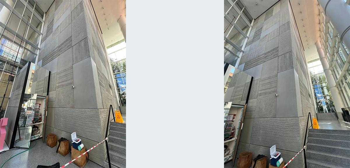 את הבניין תכננה האדריכלית אורלי שרם ורן כהן בנה את המודלים של הקיר. המודלים הועתקו לתבניות ואת היציקה בבטון עשו בחברת אקרשטיין.