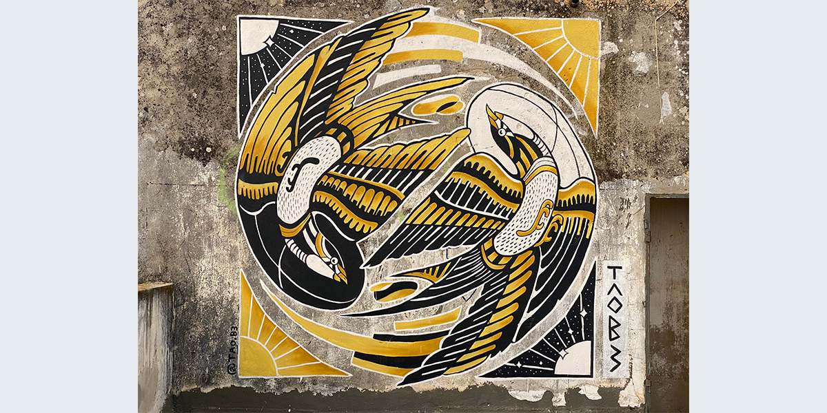 האמן אייל טאוב חותם על ציוריו בשם Tao.b3.