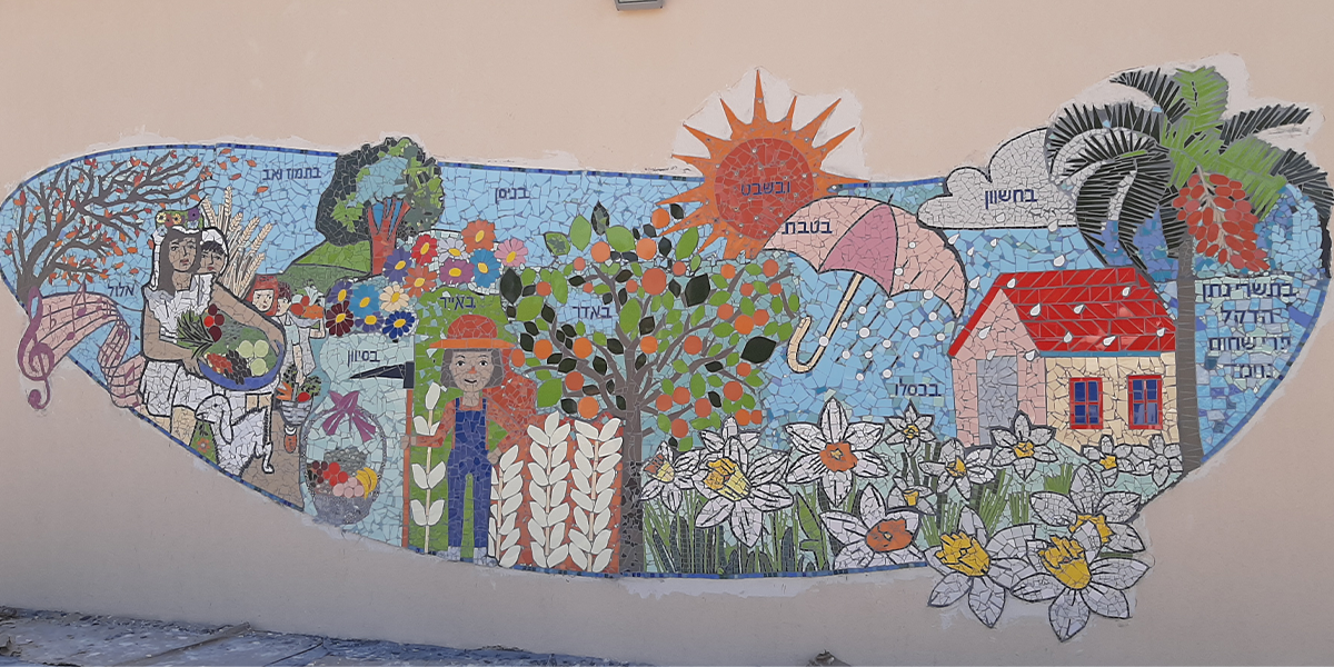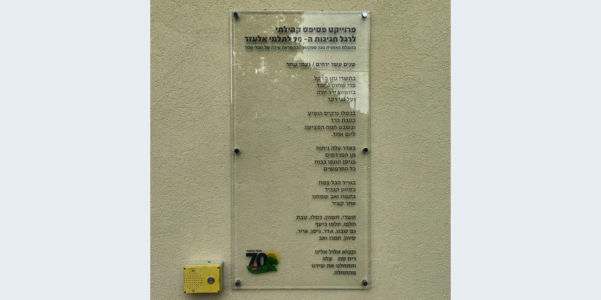 ליד הקיר יש עמדה, ובה מנוגן השיר "שנים עשר ירחים" שכתבה המשוררת והמלחינה נעמי שמר.