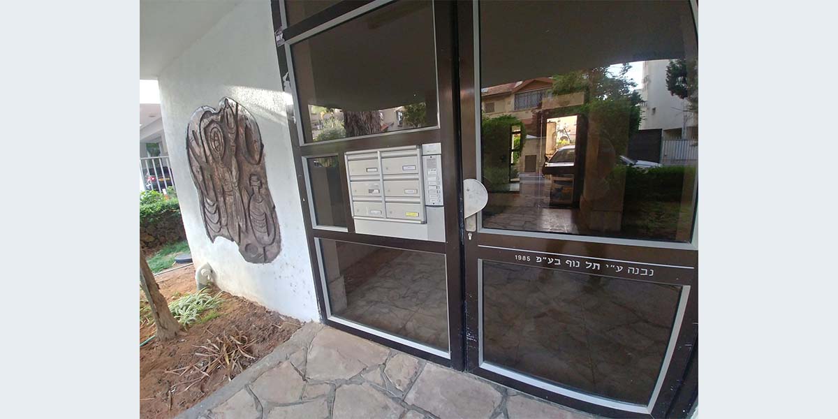שתי יצירות על הקיר החיצוני ליד דלת הכניסה לבניין הדירות ושתיים על הקיר הפנימי במבואה לבניין.