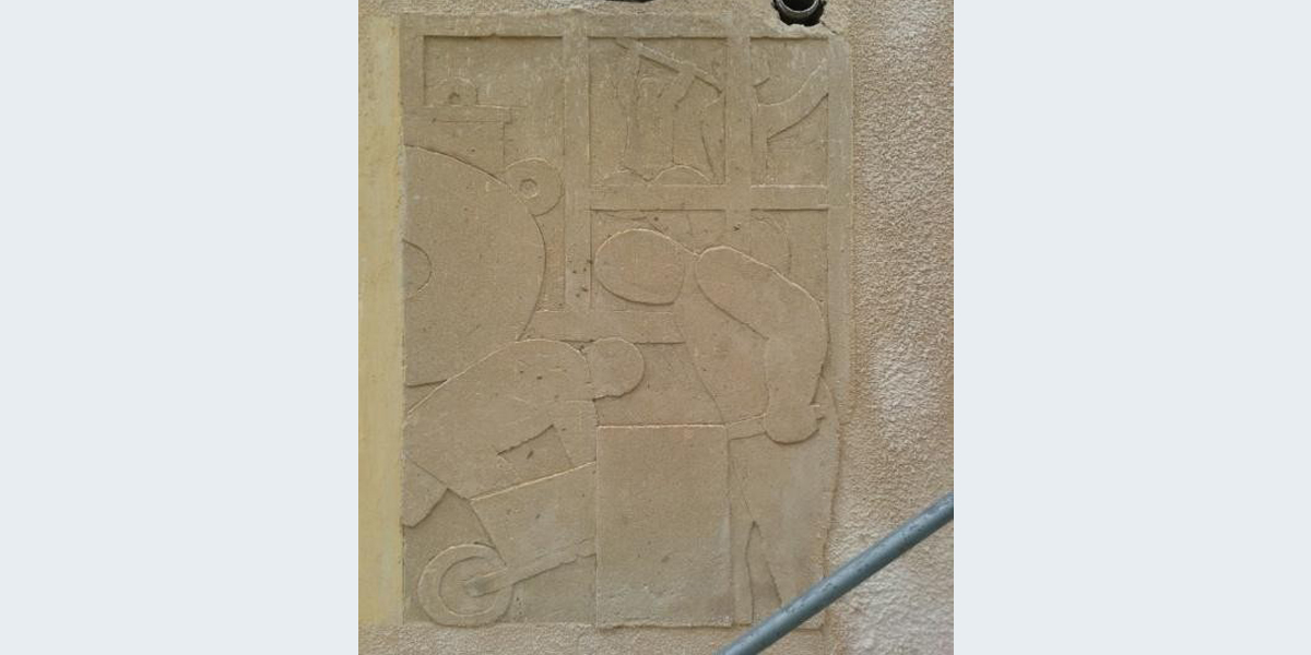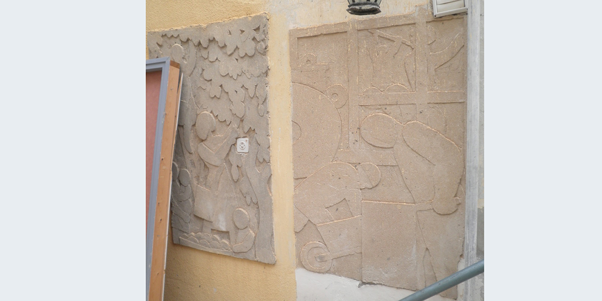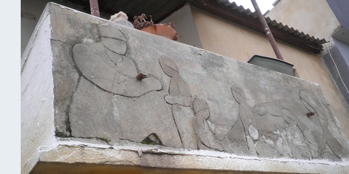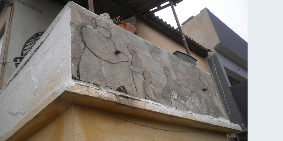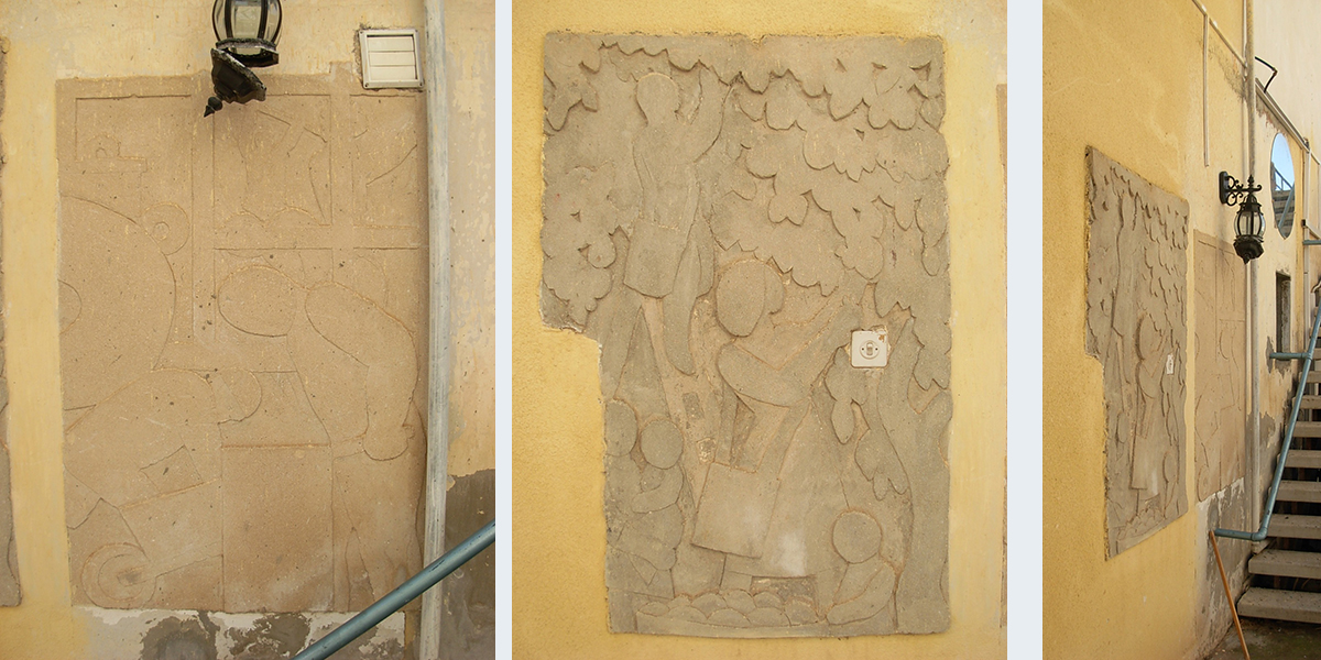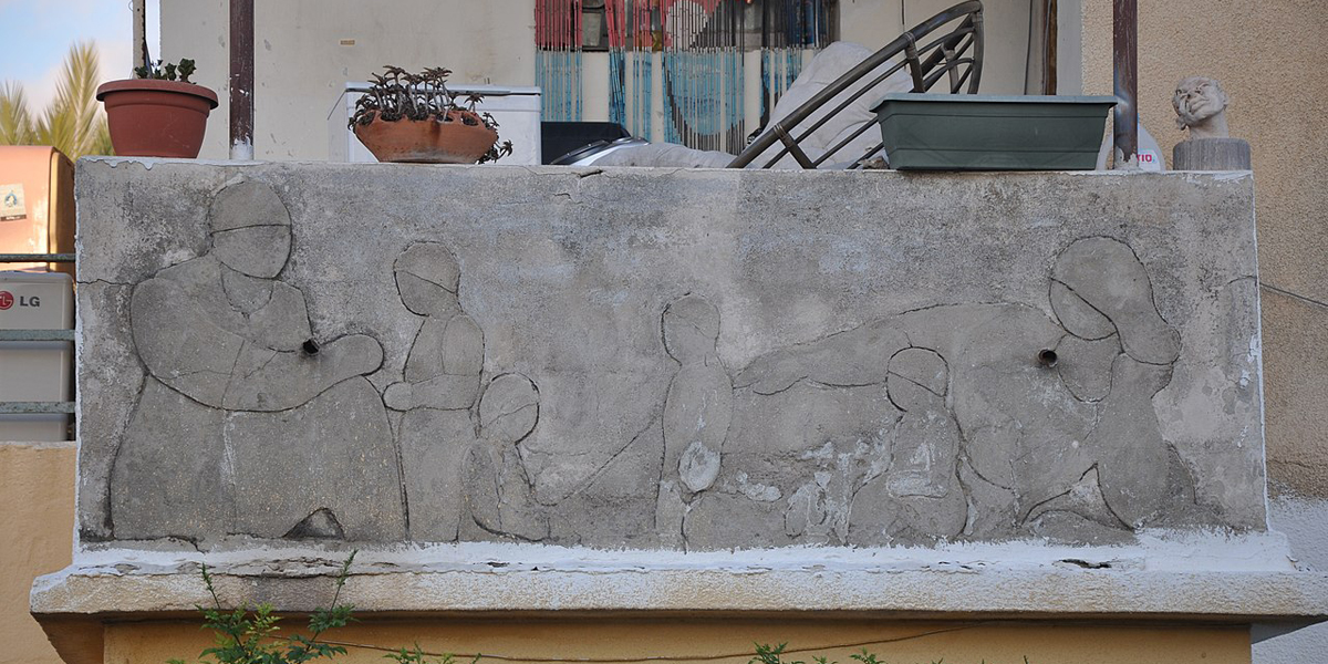 האמן אהרן גלעדי יצר על הקירות החיצוניים ועל גדר האבן הנמוכה בביתו ברח' הי"ד 19 חולון תבליטים לא־עמוקים. יצירה דומה עשה גם על מעקה מרפסת הבית השכן – מס' 18. בנוסף לתבליטים אלה יצר אהרון גלעדי את "יוסף ואחיו" על חזית בית הספר "שלום עליכם" שבצפון העיר חולון.