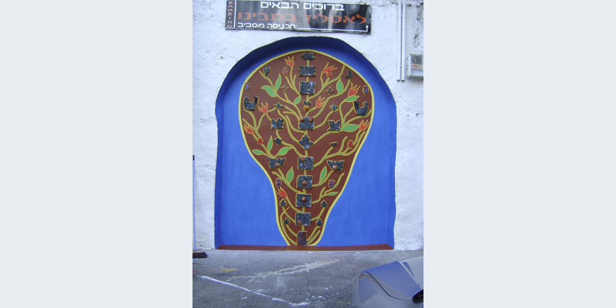 "היצירה עשויה  קרמיקה ואקריליק על טיח. עבודה זו נוצרה מחלקי קרמיקה שמצאתי בסטודיו של אימי לאחר פטירתה ב־2009. במקור השתייכו החלקים לעבודת קרמיקה שהייתה ממוקמת על חזית אחד הבניינים באזור הכרמל בחיפה. יצרתי עם שאריות הקרמיקה קיר שהשלמתי בציור, וזאת במסגרת הפסטיבל של החג של החגים 2009. נושא הפסטיבל היה חיבורים. בכך רציתי ליצור קשר ליצירת הקרמיקה ״עץ החיים״, שחיה תומא יצרה ב־1999 במסגרת הפסטיבל של החג של החגים. סמוך לעבודת הקיר התנוסס שלט עם שם העבודה ושיר שכתבתי, שבמילותיו רציתי להביע שכוח החיים חזק מההרס. זאת גם במחשבה על הקיר שהורד מחזית הבניין אך מחלקיו נוצרה עבודה חדשה.גם קיר זה הוסר לצערי עקב שינויים בבניין", מיכאל תומא