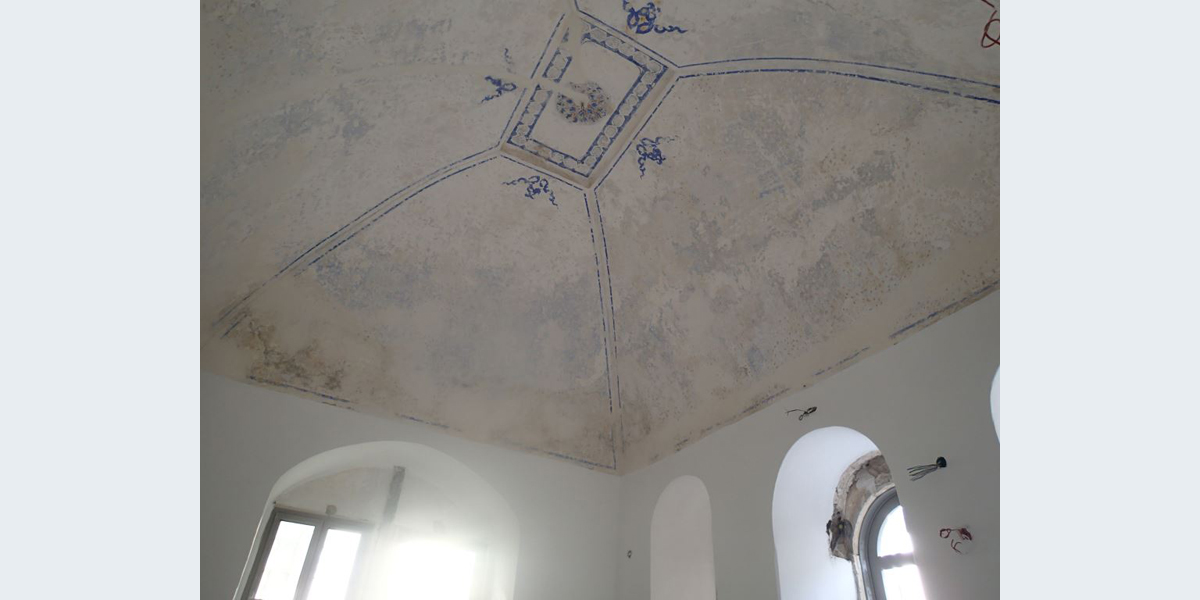 לאחרונה עבר בית אנה טיכו שימור ונתגלתה תקרה זו בסלון הבית בקומה השניה.