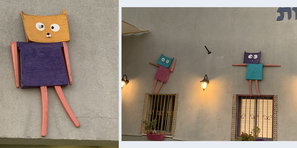 את הדמויות החתוליות־משהו יצרו מכיסאות שפורקו. תחנת מונטיפיורי עשויה מאבני פסיפס ומדחף של מאוורר.