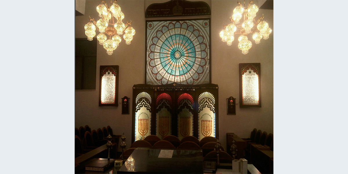 זהו ציור על חלון זכוכית, שהוא המשכו של ארון קודש.