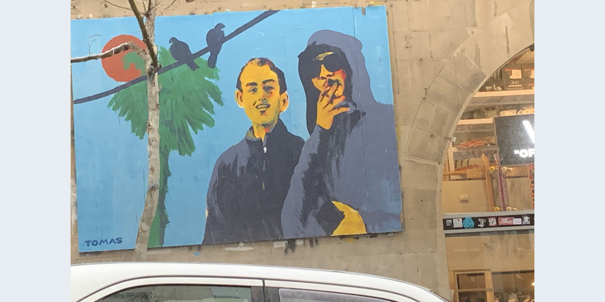 הצייר טום גולדסמיט חותם Tomas. הוא צייר את הציור כמחווה לגולשים בסקייטבורד בירושלים. בתמונה נראים שניים מהם: ליאור פינטו ו?.