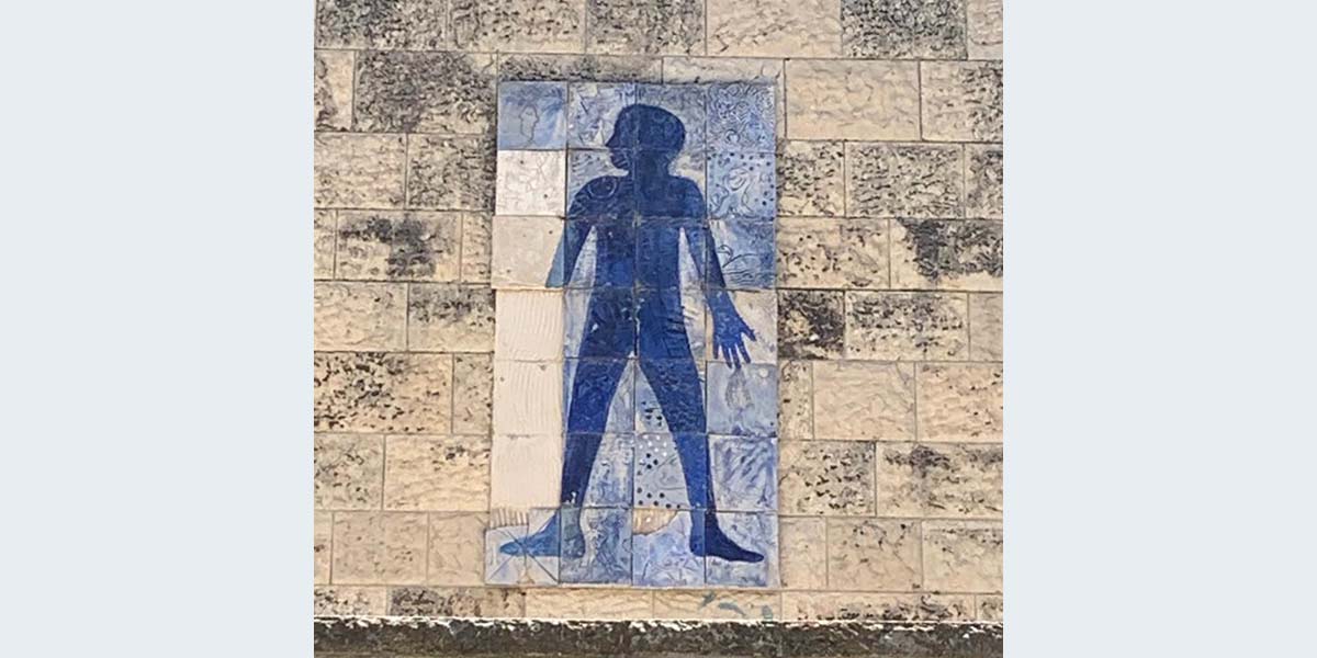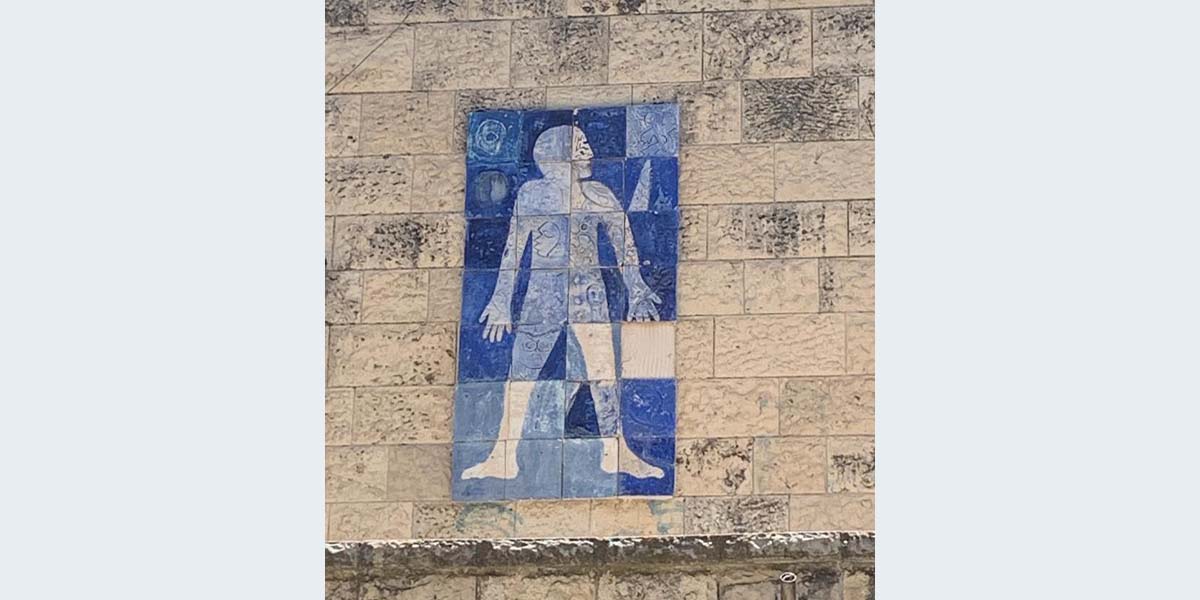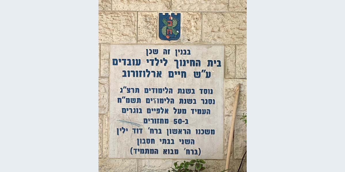 התבליט נעשה בידי תלמידי בית הספר היסודי. המורה ציירה את הדמויות בקווי מתאר, וכל ילד קיבל אריח ועיצב אותו. הסמל של בית החינוך לילדי עובדים נעשה קודם לכן, לא ידוע מי עושהו.