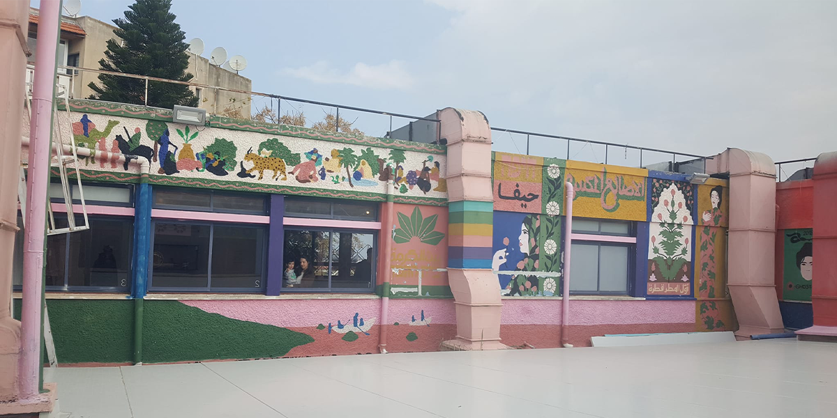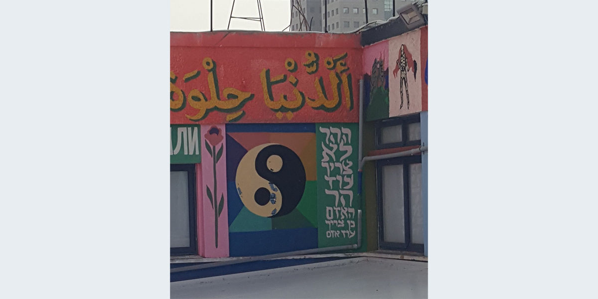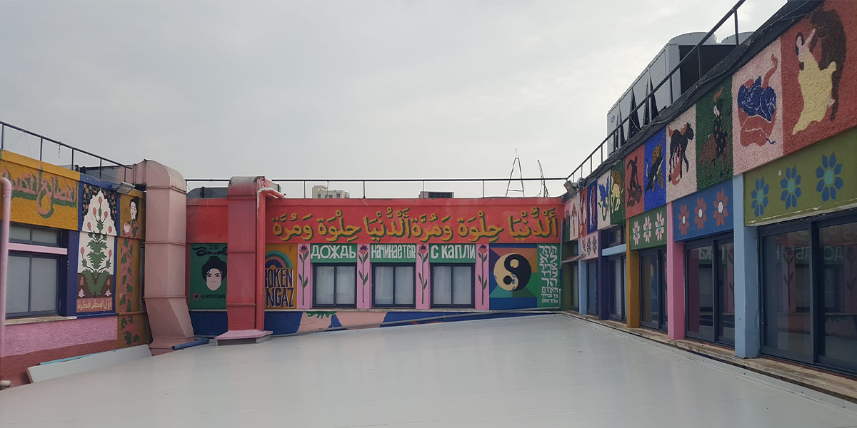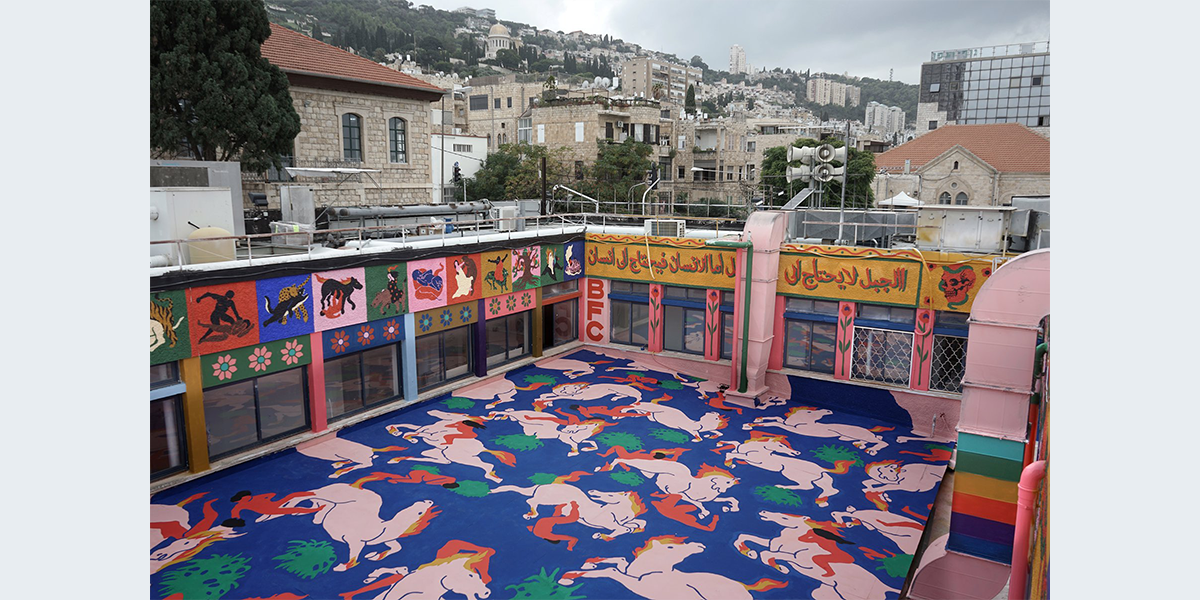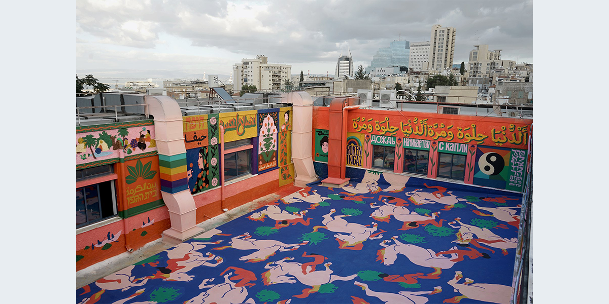 קולקטיב אמנות הרחוב ברוקן פינגאז פועלים בארץ ובעולם כבר למעלה מעשרים שנה. במסגרת “המרחב השלישי – אגף לחינוך ואמנות” בבית הגפן הם יצרו עבודת חוץ לרחבת הגג הפנימית של הבניין. מילים, דמויות ואמרות שזורים יחדיו בצבעוניות עזה האופיינית לקבוצה. התוצאה היא מרחב מדומיין של אגדות ומיתולוגיות המהדהדות את ריבוי הקולות והגוונים שמאפיינים את העיר חיפה, מתוך מוזיאון ללא קירות – מסלול אמונת בואדי ניסנאס.