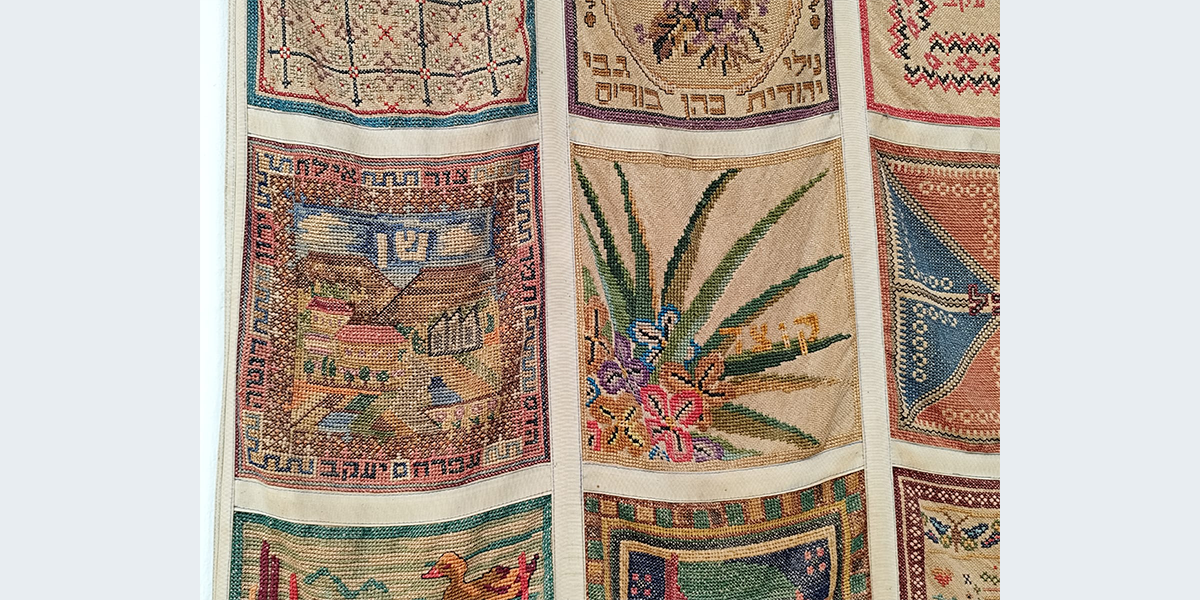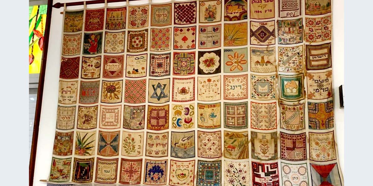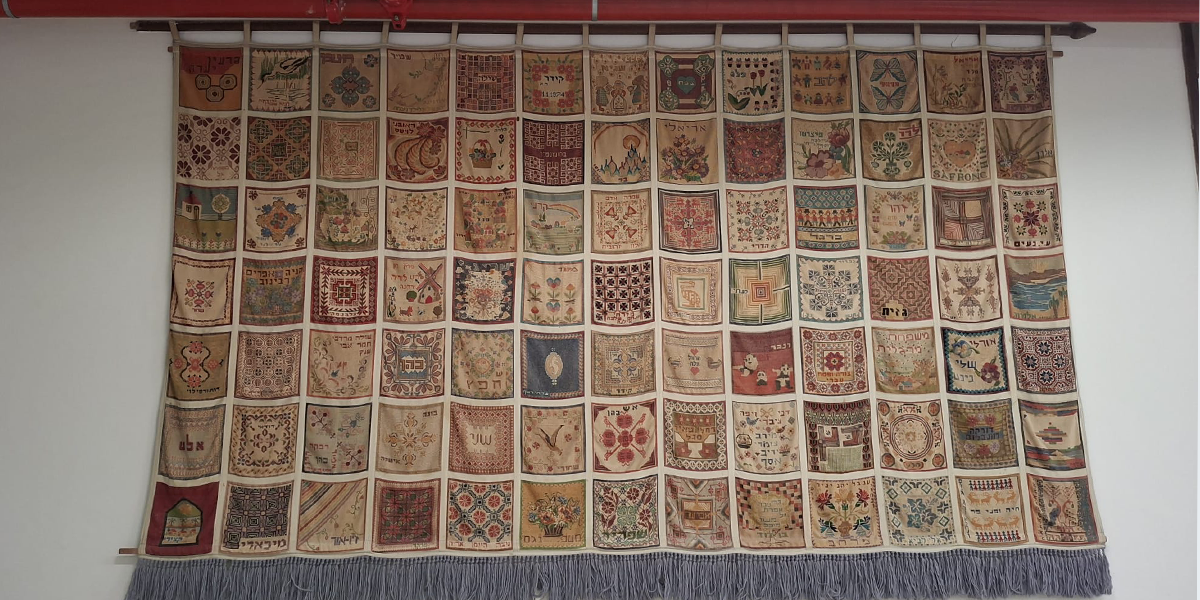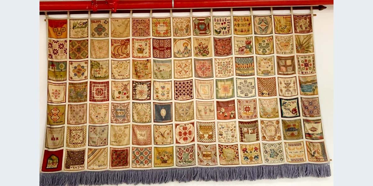שתי יריעות של ריבועי רקמה – כל משפחה רקמה ריבוע והתופרות חיברו אותם זה לזה. העבודה נעשתה בעזרה הדדית.