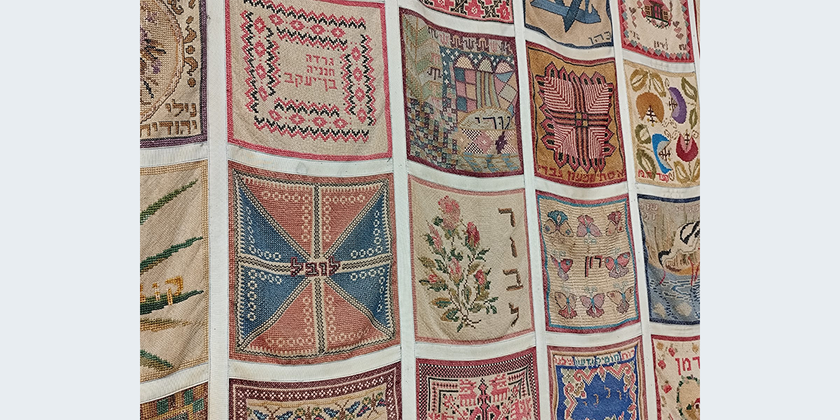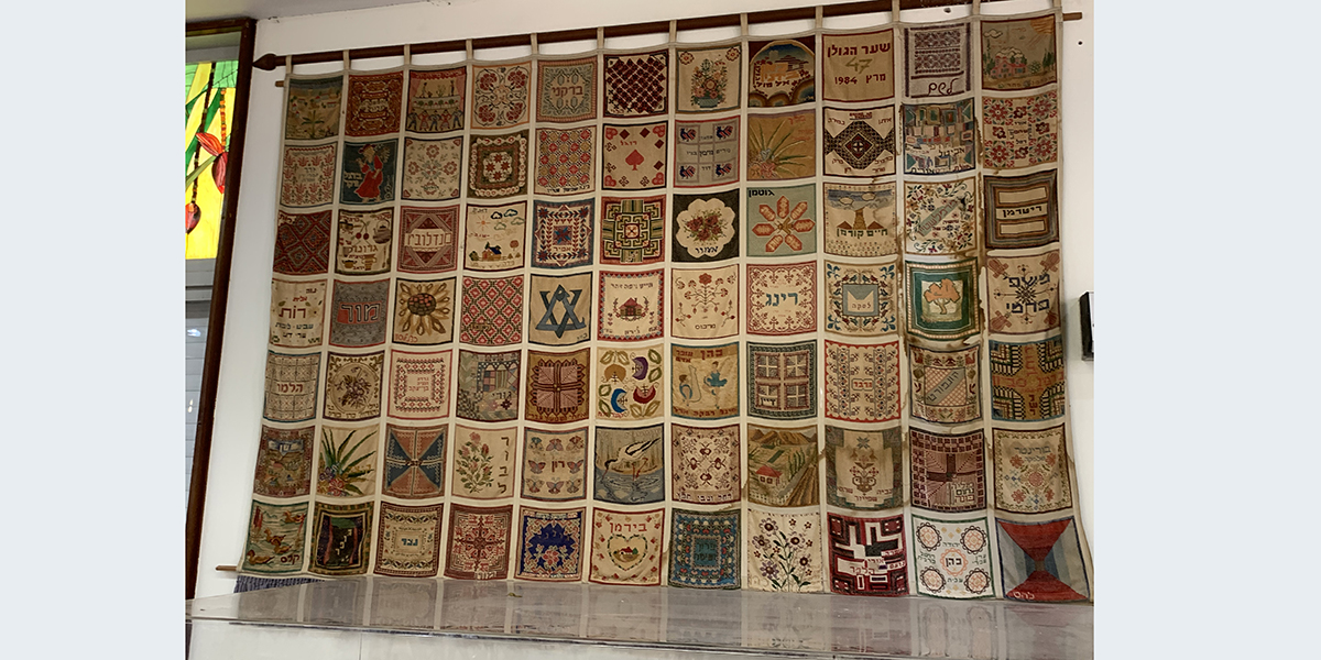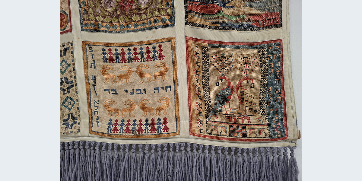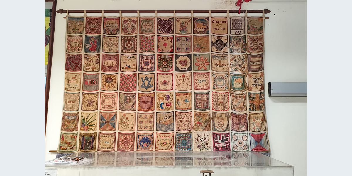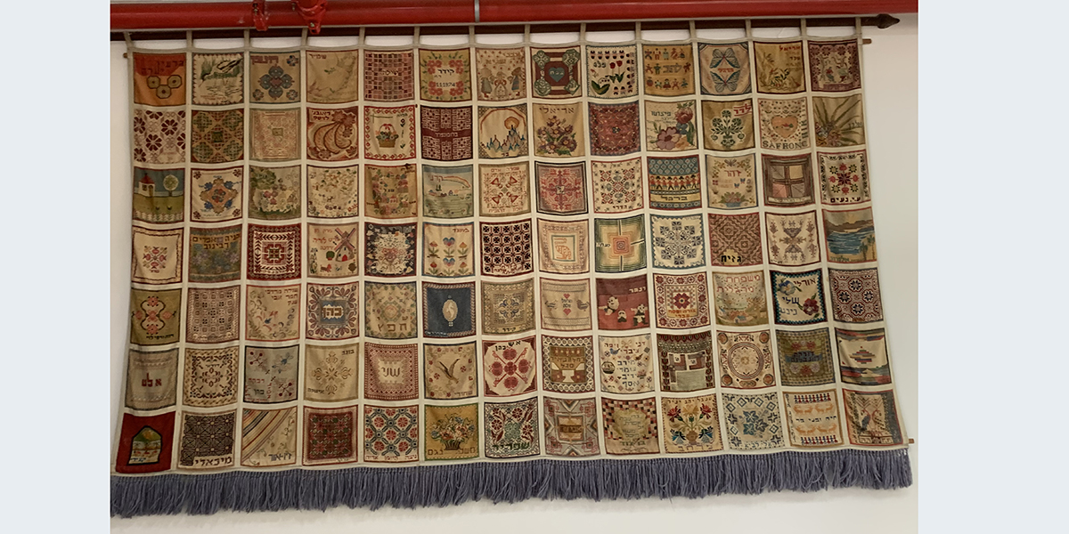 שתי יריעות של ריבועי רקמה – כל משפחה רקמה ריבוע והתופרות חיברו אותם זה לזה. העבודה נעשתה בעזרה הדדית.