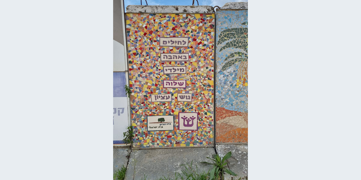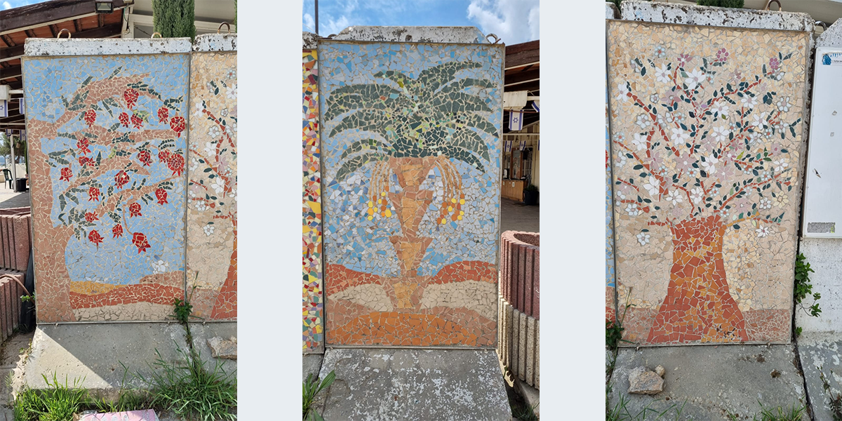 פסיפסים שעשו במשך חצי שנה ילדי שלווה בגוש עציון – ילדים עם צרכים מיוחדים בהנחיית האמנית שרון ברנד. הפסיפסים הוצבו בפינה החמה לחיילים בצומת גוש עציון. העצים שבפסיפסים מייצגים את הקבוצות של הילדים: קבוצת שקד, קבוצת תמר וקבוצת רימון.