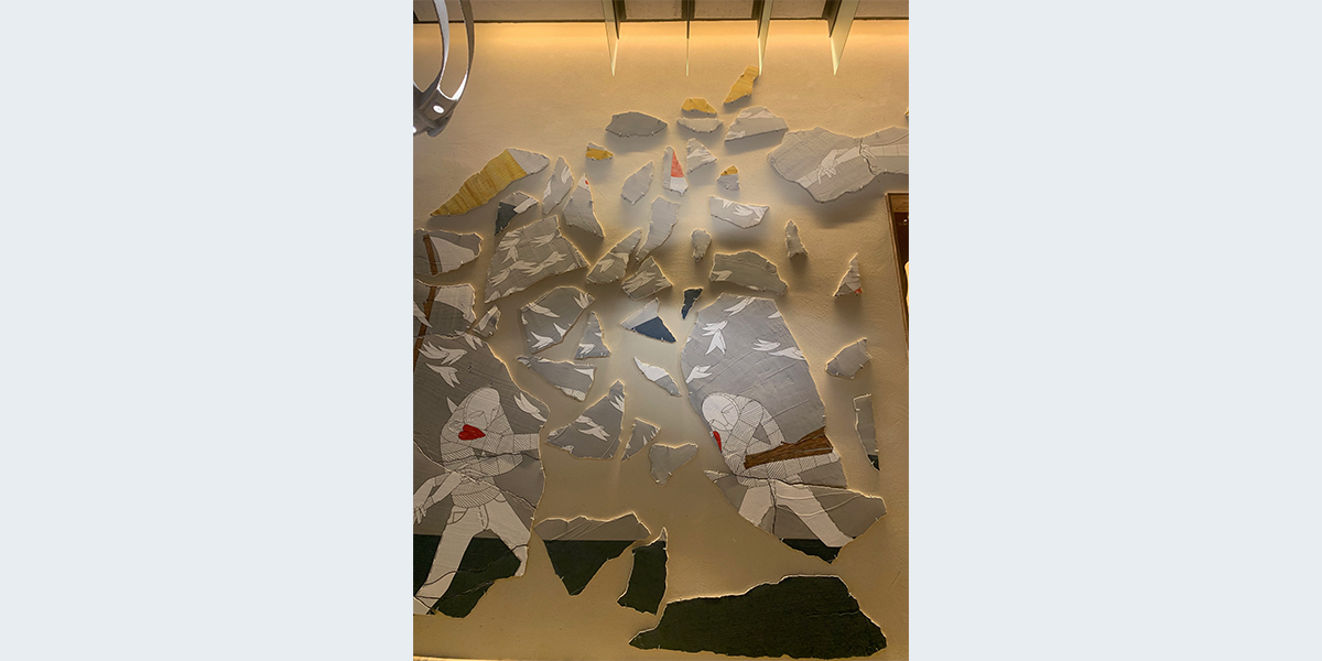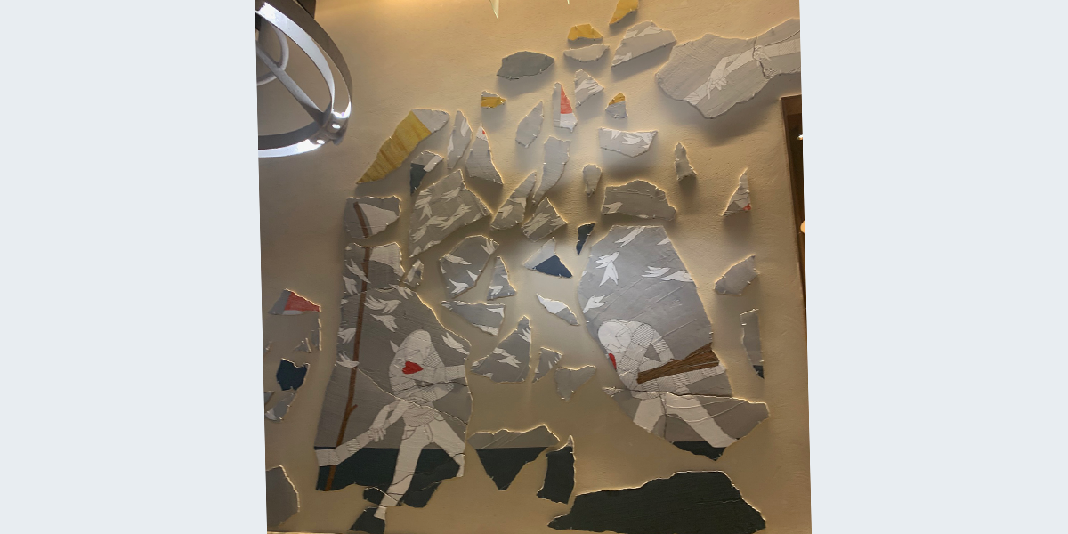 האמן אדם יקותיאלי הידוע בכינויו Know Hope יצר כאן מעין קולאז' (הֶדבק) של שברי בטון ובמרכז הדמות המזוהה עם יצירותיו נאבקת ברוח? בסערה?