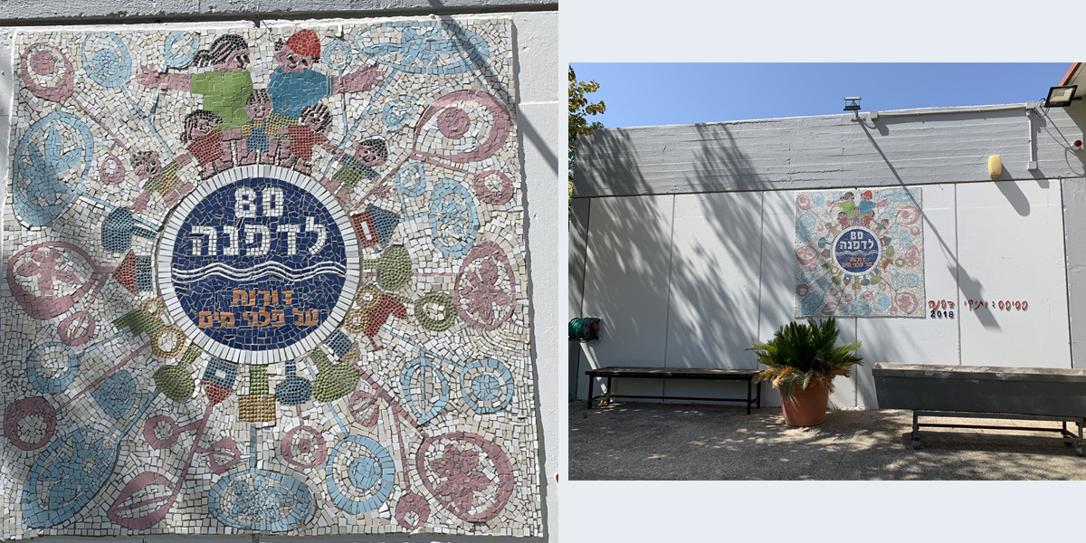 הפסיפס משחזר גלוית שנה טובה שעיצבה רותי בנאי בת דפנה. העבודה נעשתה בהנחייתה של אסתי דרור מקיבוץ כפר סאלד.