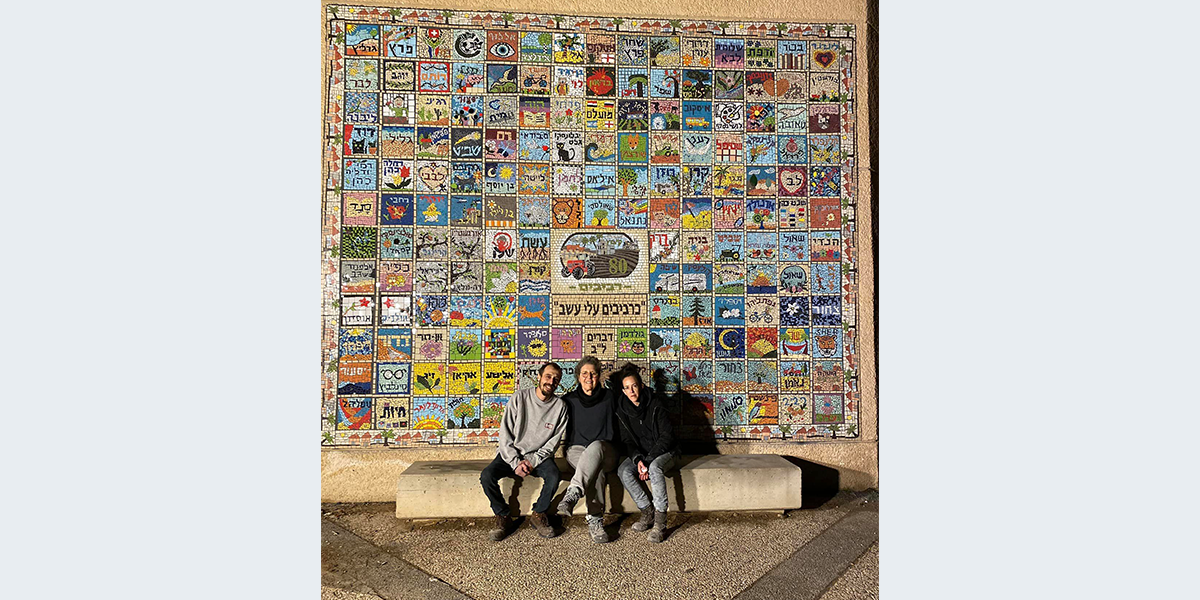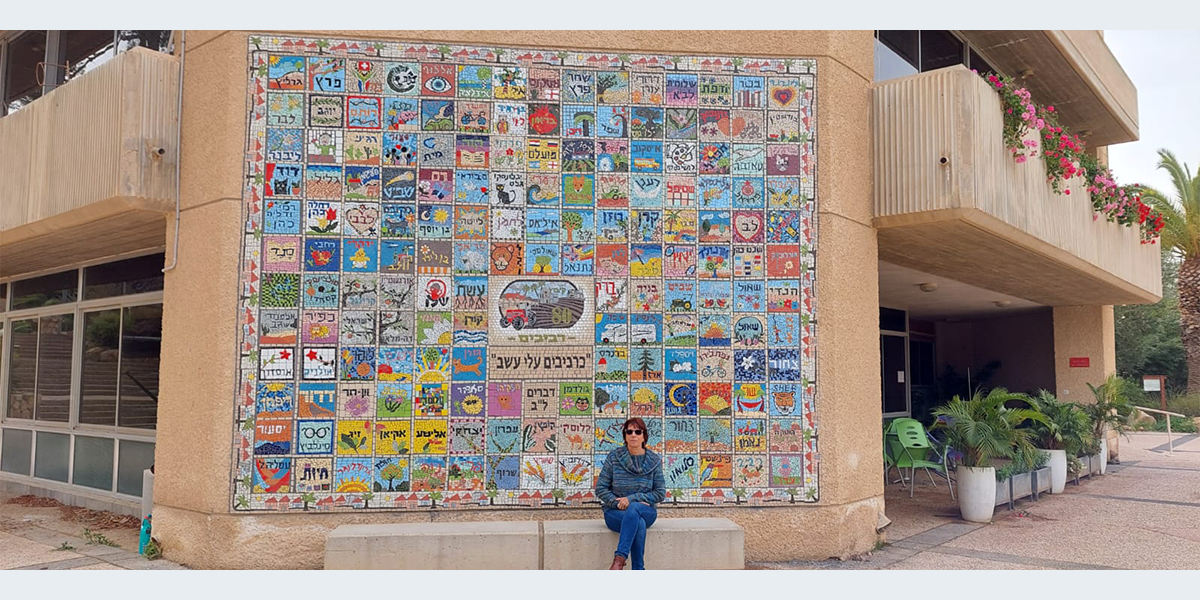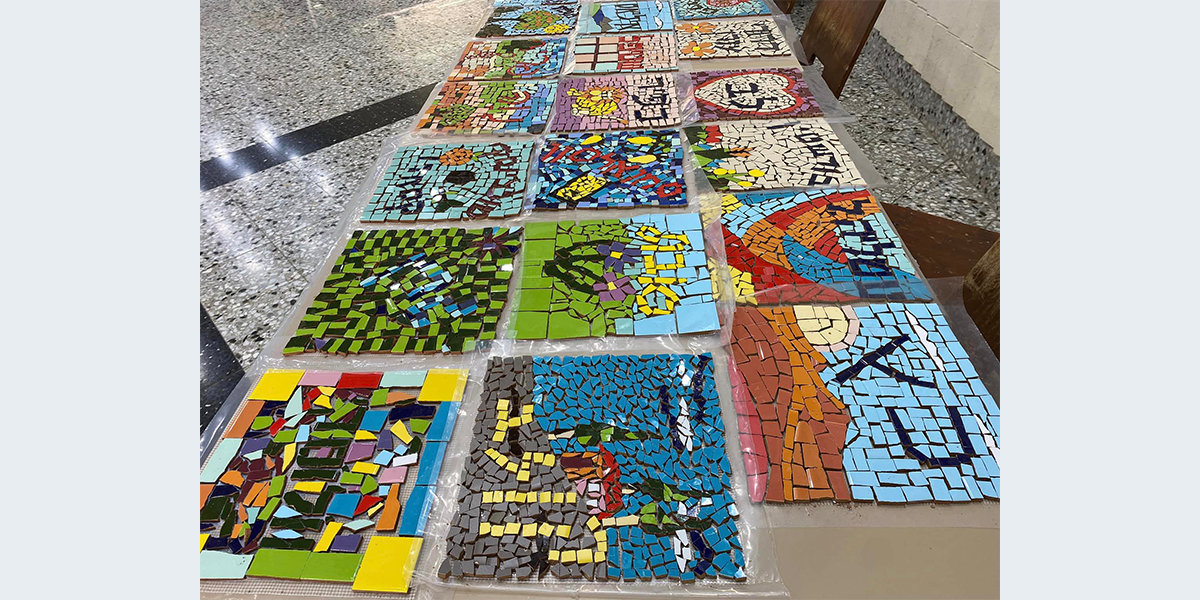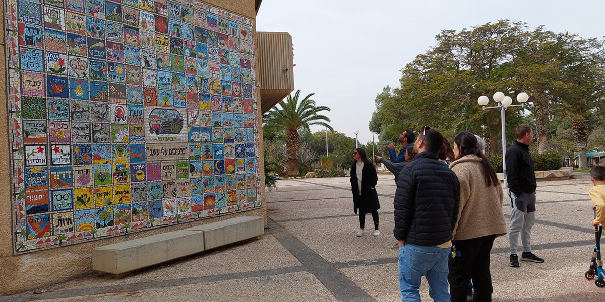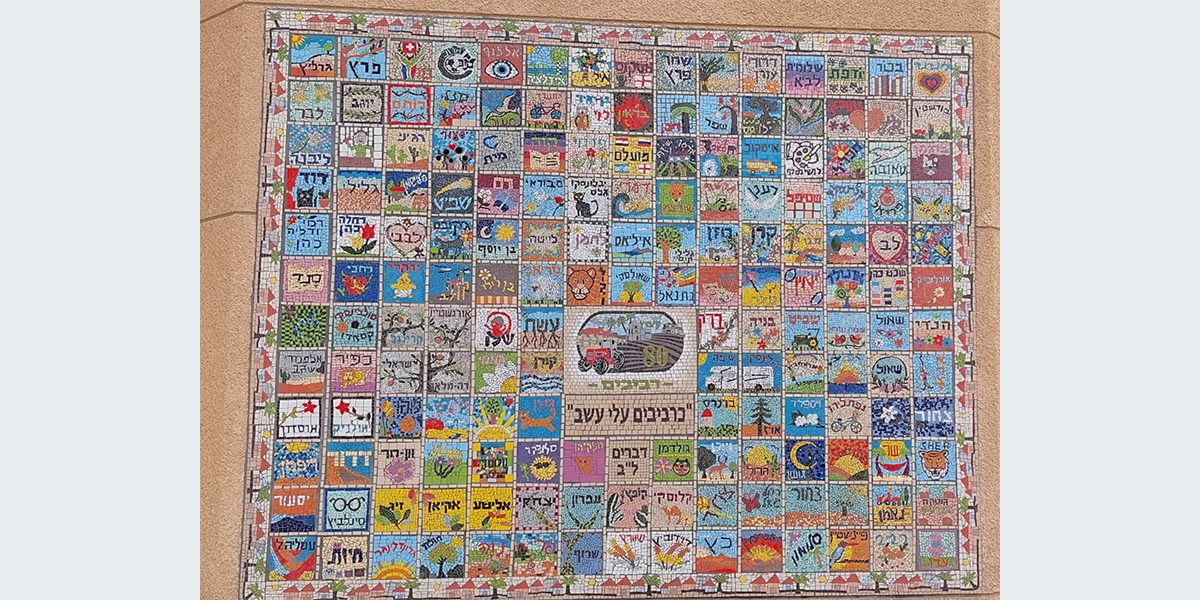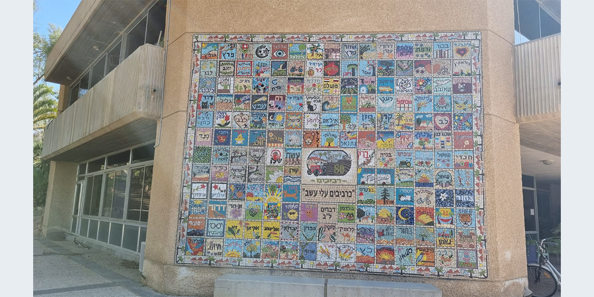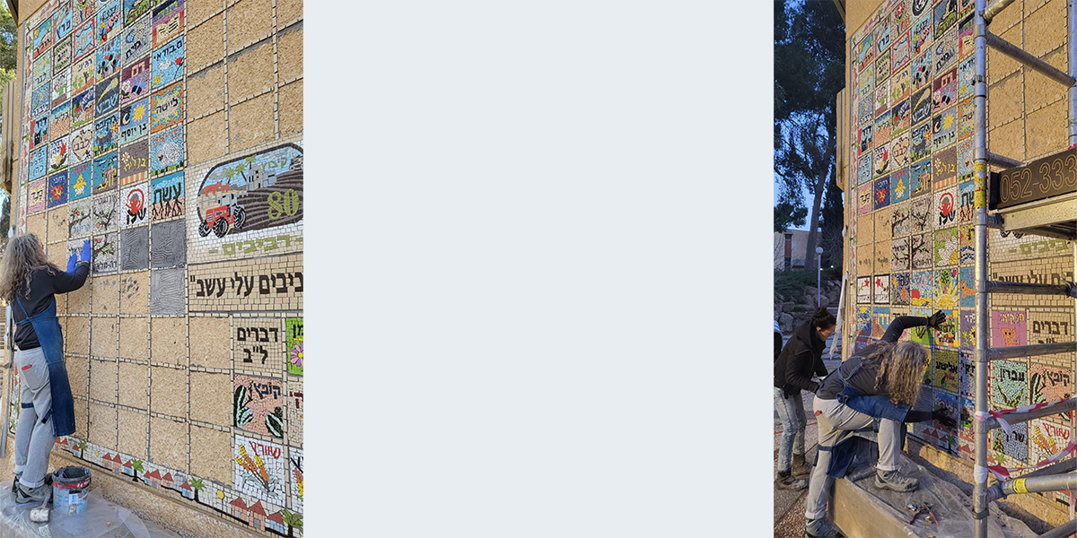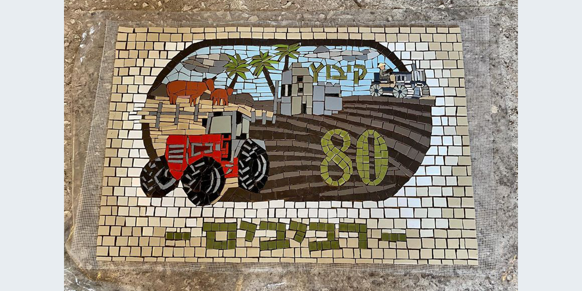 את הפסיפס הכינו חברי הקיבוץ – משפחה משפחה – בהנחיית האמנית דלית בן־שלום במלאת 80 שנה לקיבוץ רביבים.