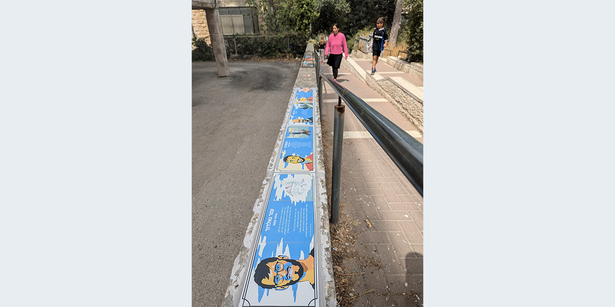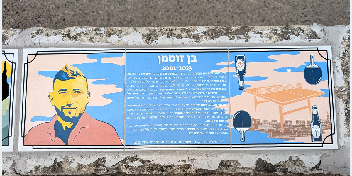 ירושלים איבדה במלחמה הרבה אנשים טובים, צעירים ויקרים, שיצאו להגן על הבית כשכל החיים עוד לפניהם. ביוזמת תושבי השכונה יצרו אמני ועדת קישוט אריחי קרמיקה מעוצבים לזכרם של ארבעה מבני השכונה – בן זוסמן, עמר גאלדור, מיכאל גל ויצהר הופמן והציבום בנתיב זהרה ובקרבת גן שמוקם בימים אלה להנצחתם. לשם עיצוב האריחים שוחחו האמנים עם בני המשפחות של הבחורים המונצחים וניסו בעיצוב האריחים ללכוד משהו קטן מאופיים ומהרוח הייחודשת של כל אחד מהם. את העיצוב יצר האמן דוד ביבי, והוא ומתן מזרחי ביצעו את העבודה.