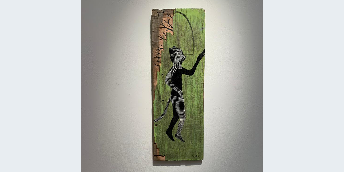 היצירה נוצרה לתערוכה "ברשות הציבור", שאצרה נורית דהן בייעוצו של דרור הדדי במוזאון הנגב בבאר שבע. בתערוכה הכניסו למוזאון את טובי אמני הרחוב הישראלים וניתן להם חופש אמנותי ליצור ישר על גבי קירות המוזאון עצמו. אמני הרחוב נבחרו מכל מיני מקומות בארץ, ויצרו במגוון סגנונות וטכניקות: ספריי, מכחול, תלת־ממד, טושים, הדבקות ועוד. בתערוכה הוצגו היצירות ישירות על הקיר לצד יצירות על חפצים: דלת, ספסל, אופנוע, מכונית. הנושא של התערוכה הוא גם דמות האמן, הדמות המצוירת על הקיר ודמותו של הצופה. "הדמויות שבחרו האמנים להציג הן לאו דווקא אנושיות, אך הן מספרות סיפור מעבר לדמות ולמקום. חלק מהאמנים בחרו בדמויות מיתיות ומסתוריות, חלקם בחרו דמויות אנושיות אמיתיות, חלקם בחרו להצחיק עם דמויות הומוריסטיות ומסרים מצחיקים וחלקם בחרו בדמותם עצמם" (דצמבר 2022–אפריל 2023), לפי יומן הרשת Street Smart, דרור הדדי.
